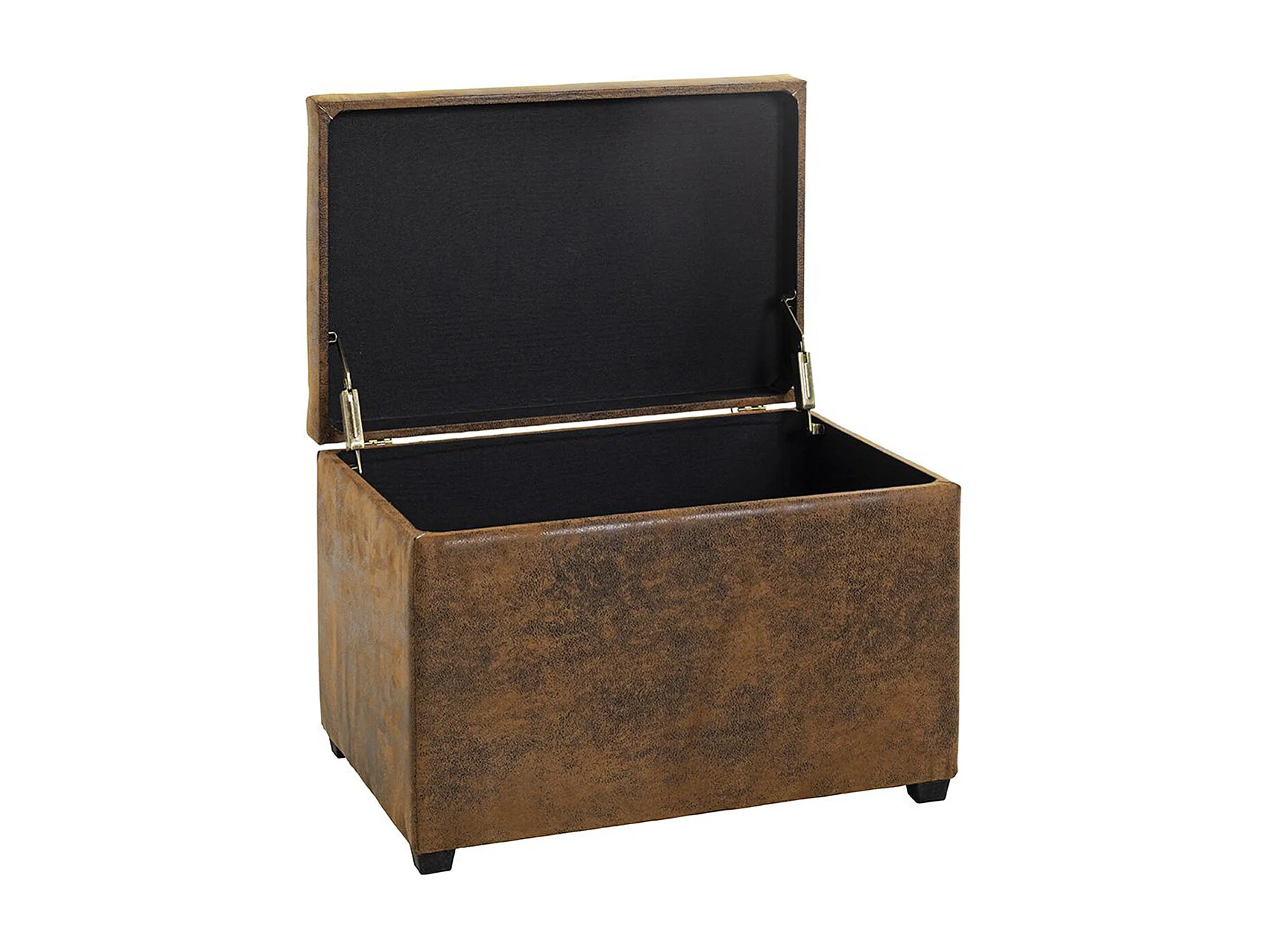 Coffre de rangement en simili-cuir coloris marron vintage et bois -longueur 58 x profondeur 39 x hauteur 42 cm
