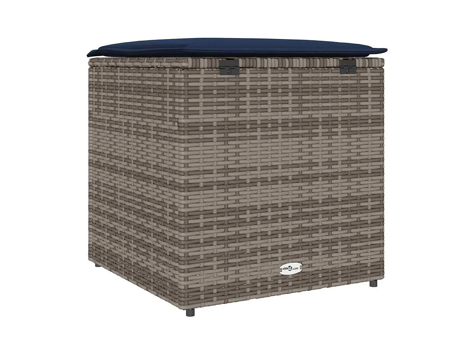 Coffre de rangement Gris et bleu marine Coussins en ratán et en tissu