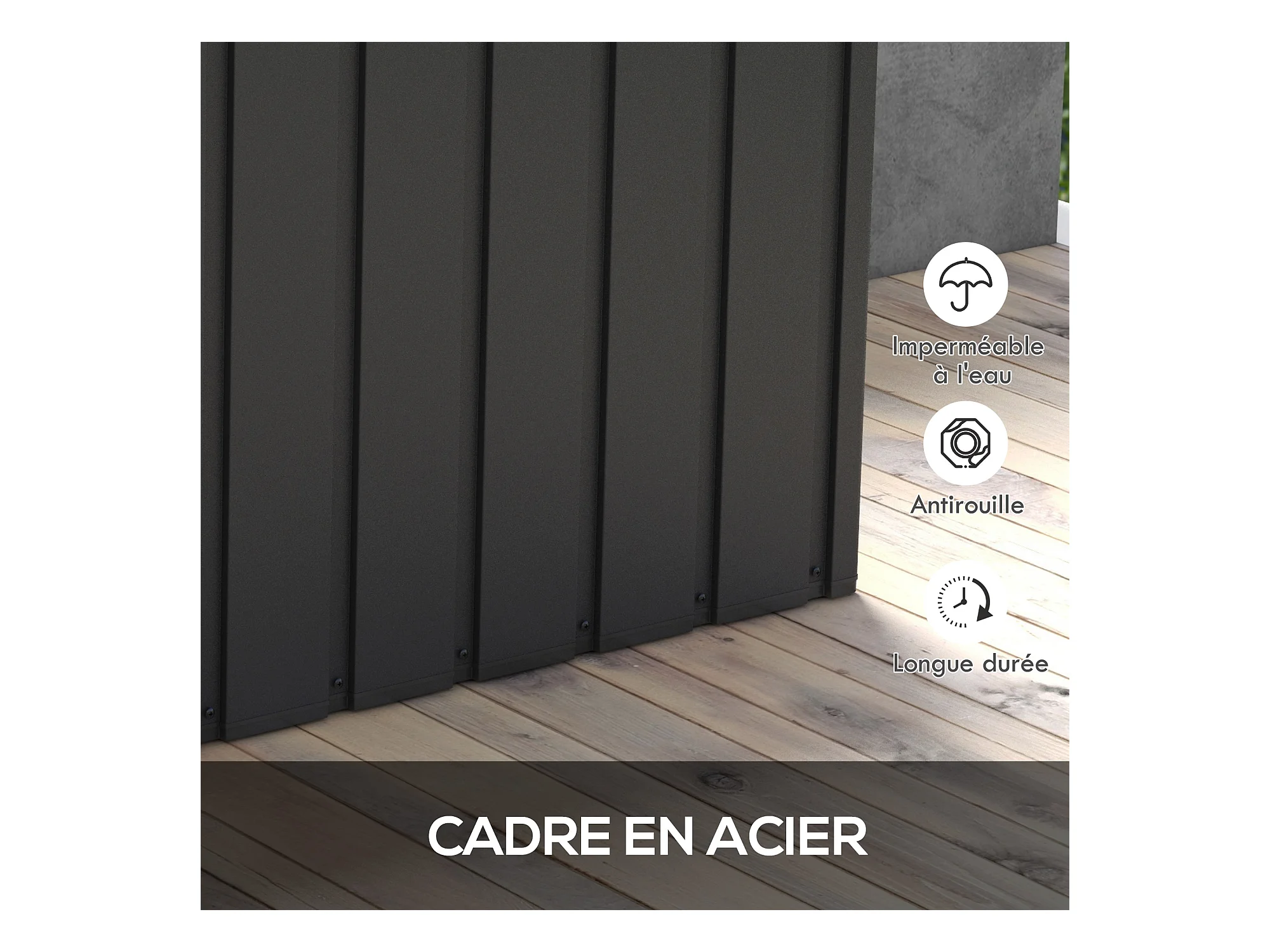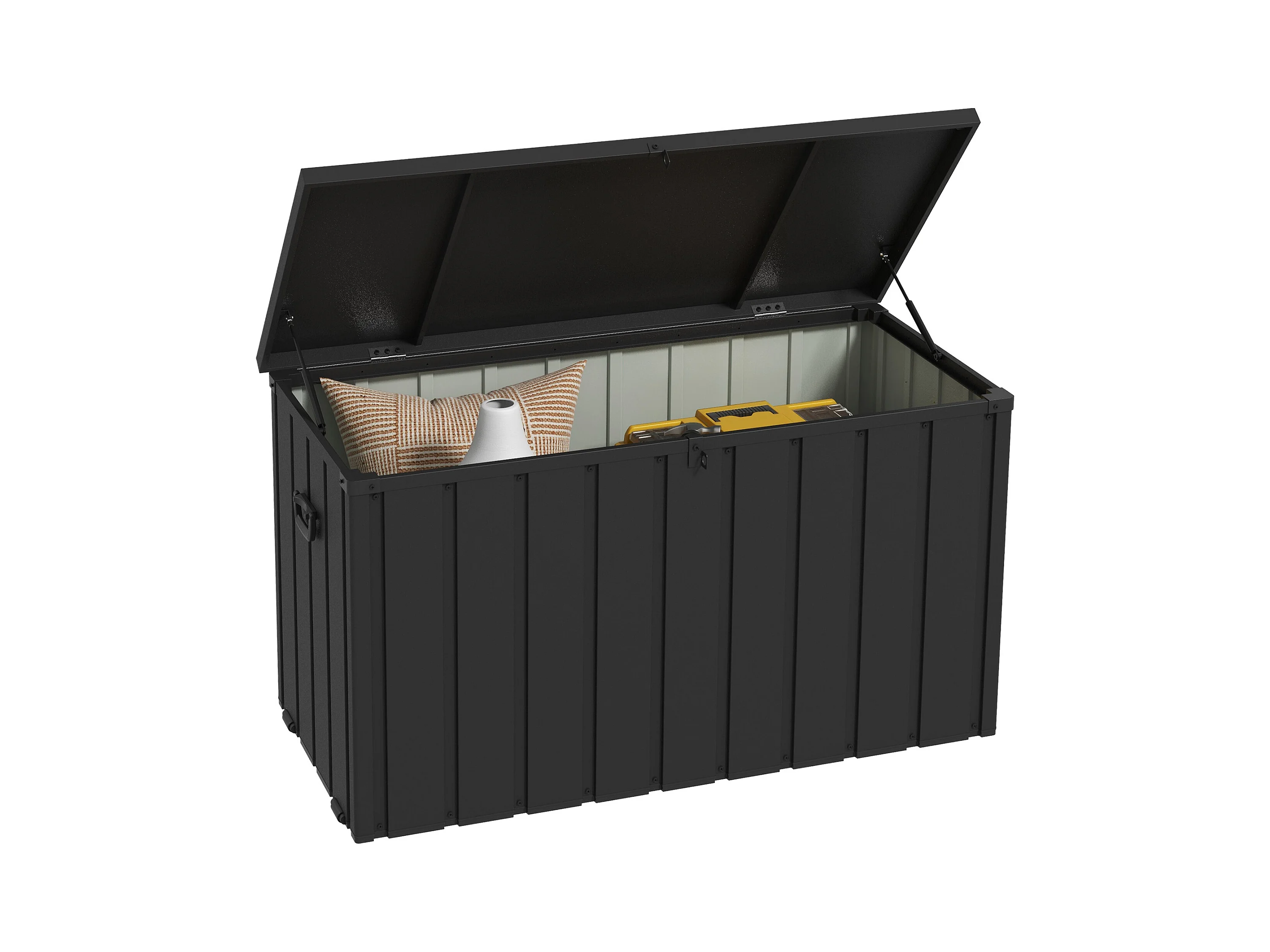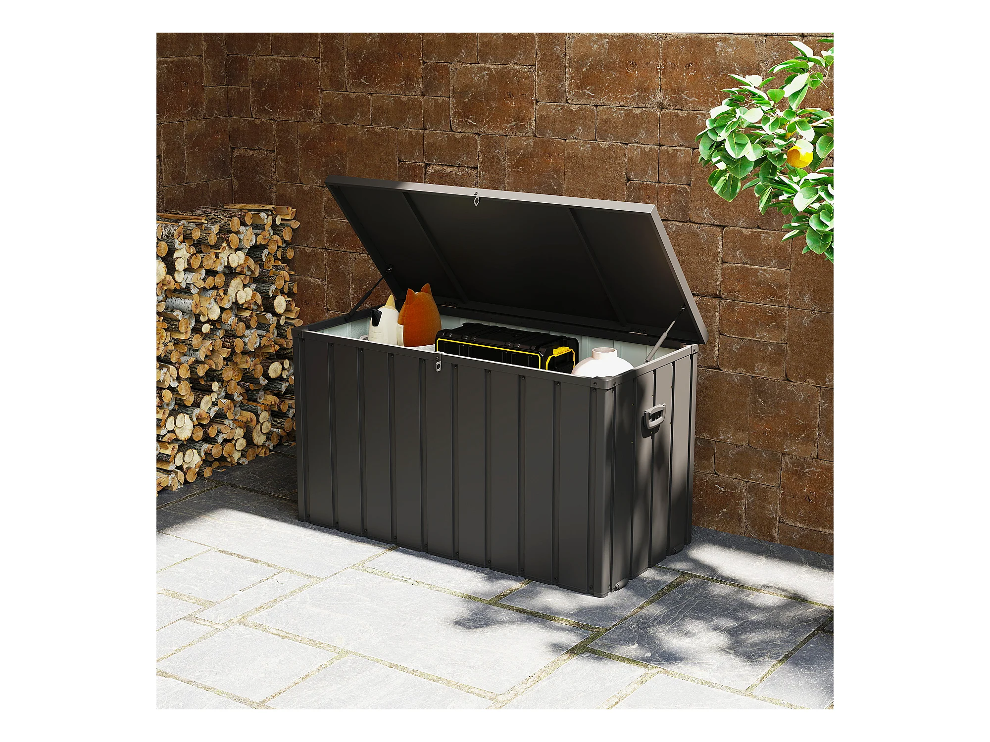 Coffre de rangement jardin capacité 450L - vérin à gaz, roulettes, poignée - acier PP anthracite
