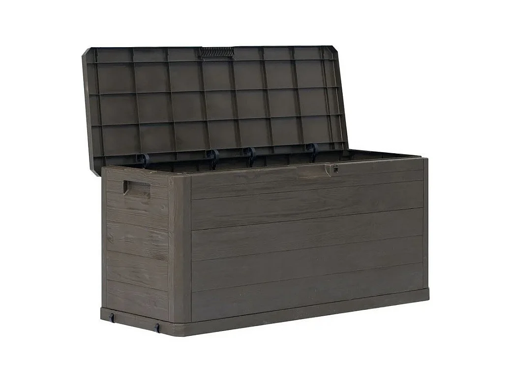 Dorian Boîte de rangement de jardin marron 283L résine tressée