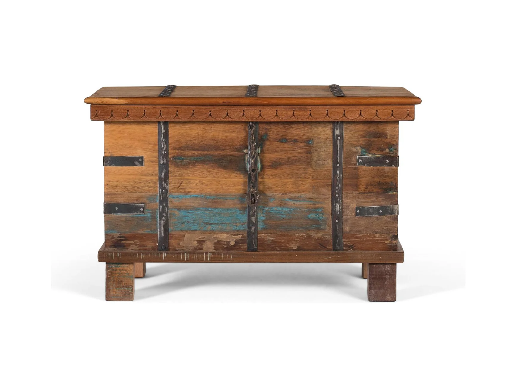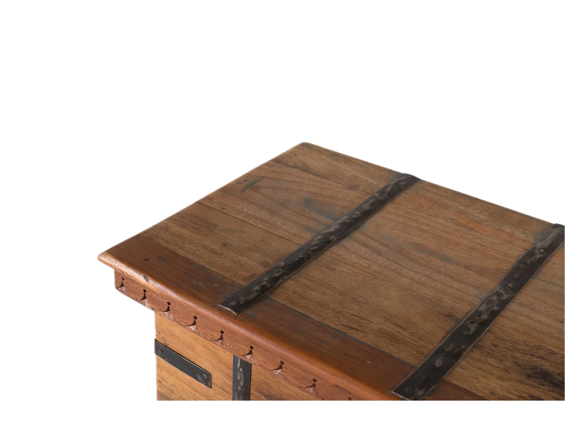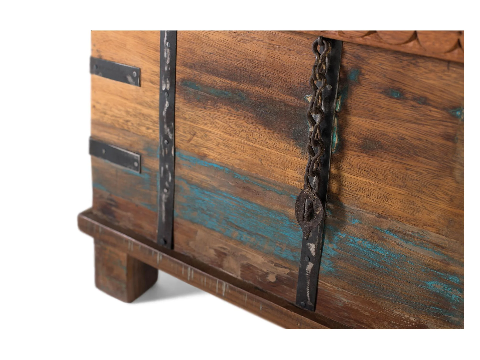 Coffre en bois recyclé avec ouverture par le haut et quincaillerie