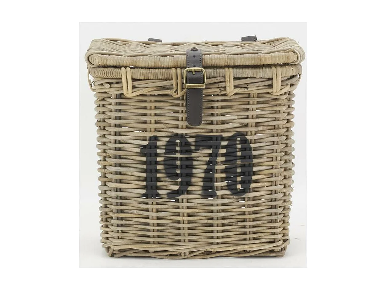 Coffre de rangement, meuble de rangement en décor pin , rotin - L. 80 x P. 40 x H. 40 cm