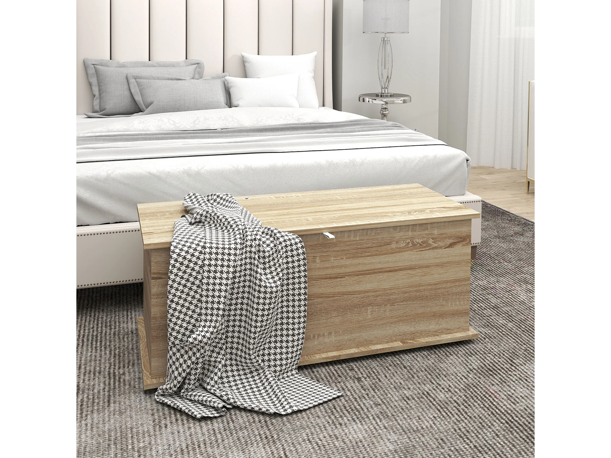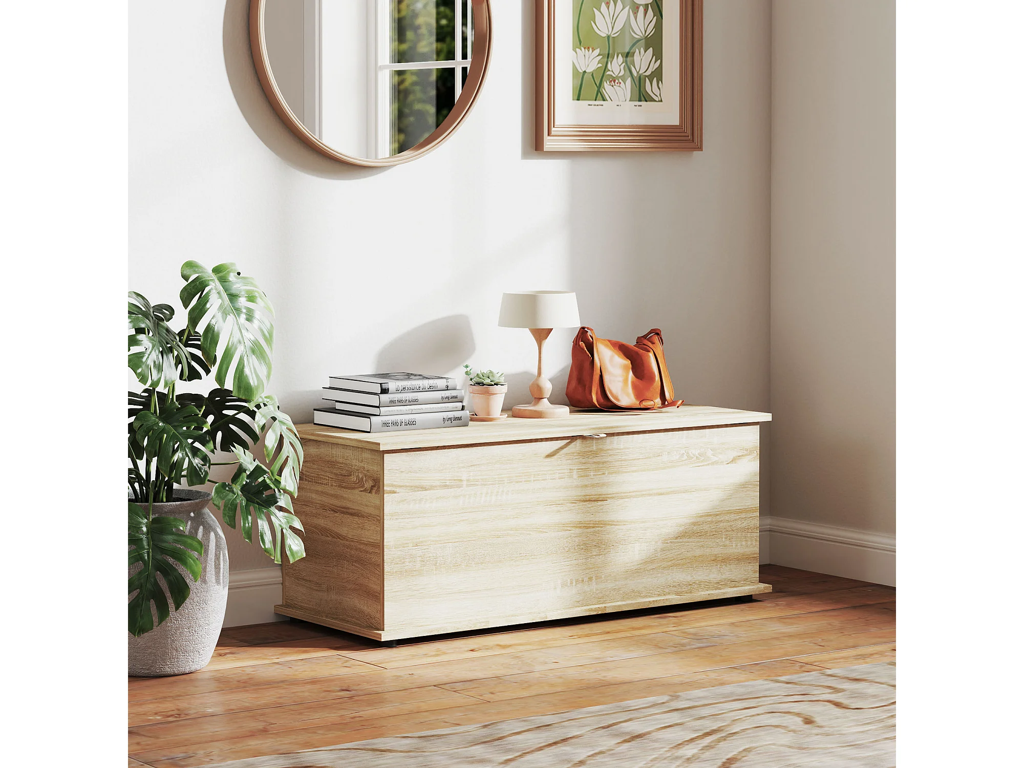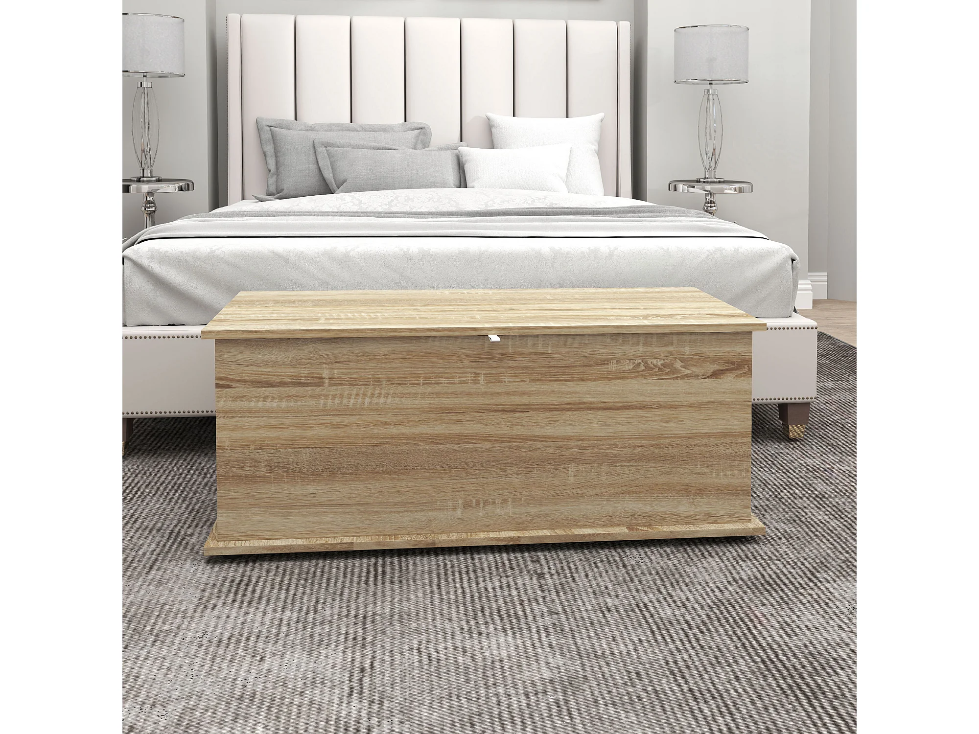 Coffre malle de rangement coffre à jouets dim. 100L x 40l x 40H cm panneaux particules bois chêne
