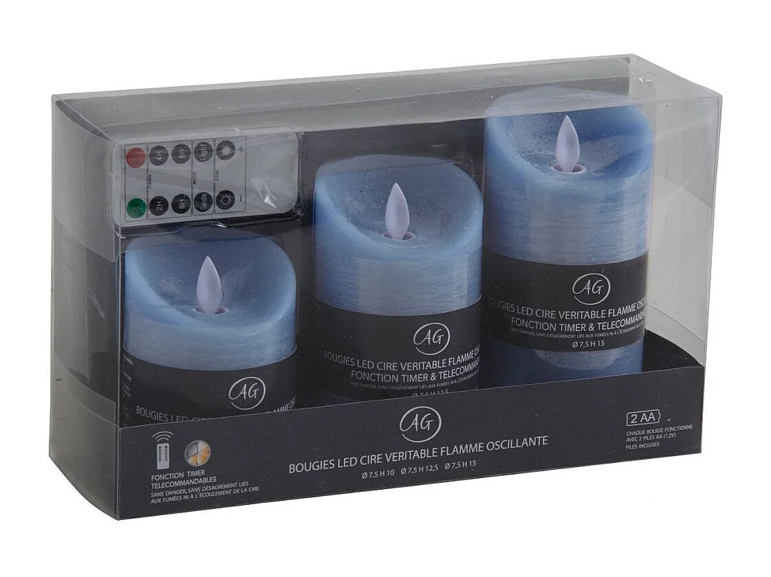 Coffret 3 bougies à LED parfumées avec télécommande Océan