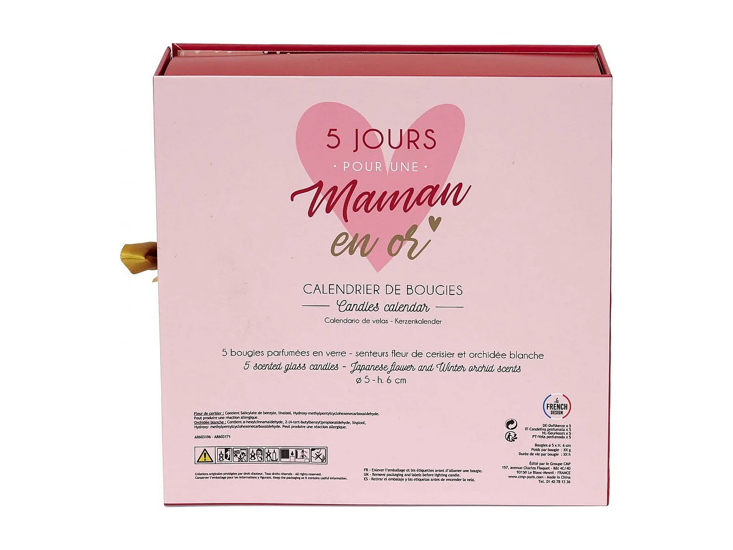 Bougie Parfumee X5 Calendrier Maman Rouge, Rose, Blanc