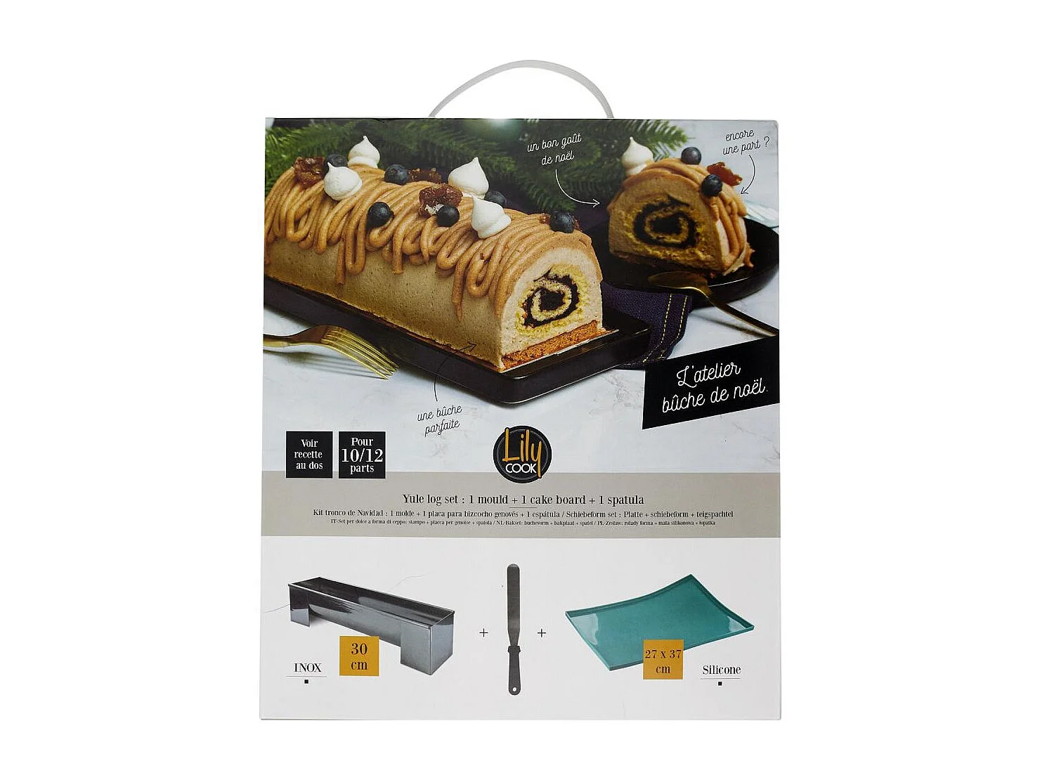 Coffret Buche Moule Plaque Genoise Spatule Argent, Bleu