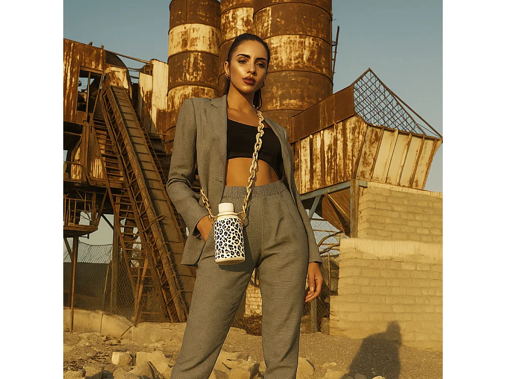 Coffret bouteille isotherme blush léopard 35 cl avec chaine
