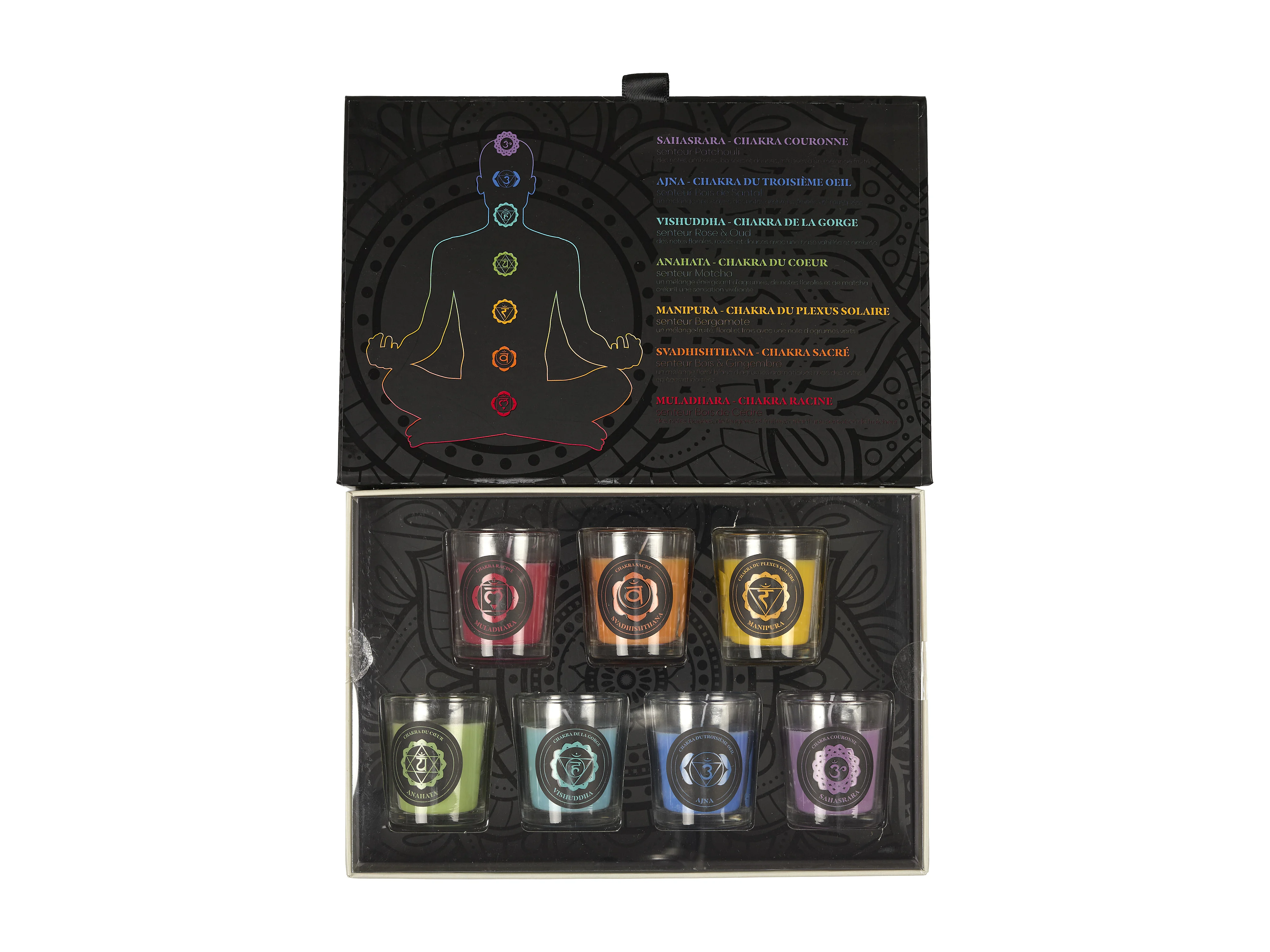 Coffret Bougie Parfumee Chakra X7 Violet, Bleu, Vert, Jaune, Orange, Rouge