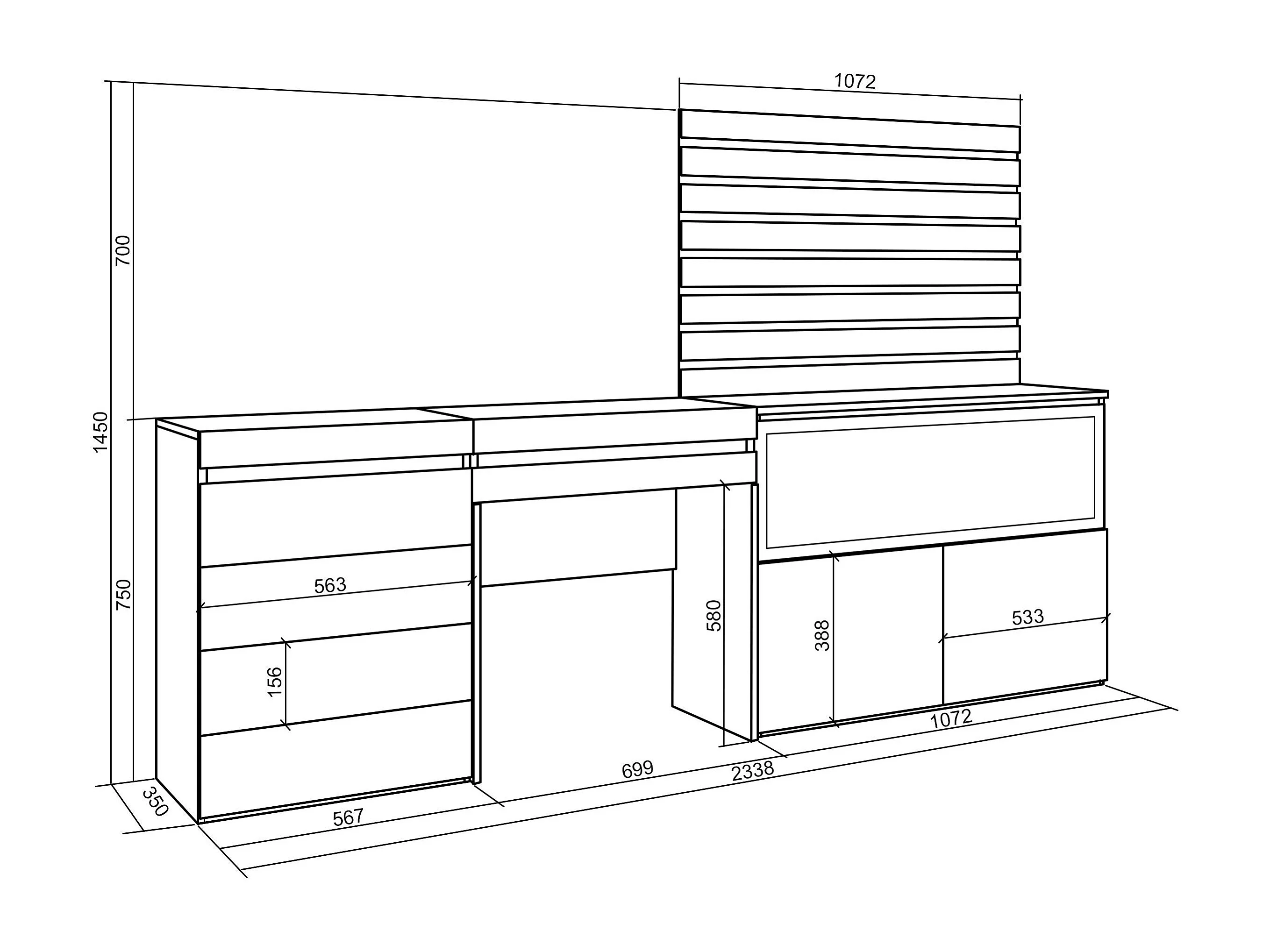 Coiffeuse, 234x35x145 cm, Avec tiroir, Cheminée électrique XXL, Commode, Buffet, Panneaux Muraux en Bois, Chêne