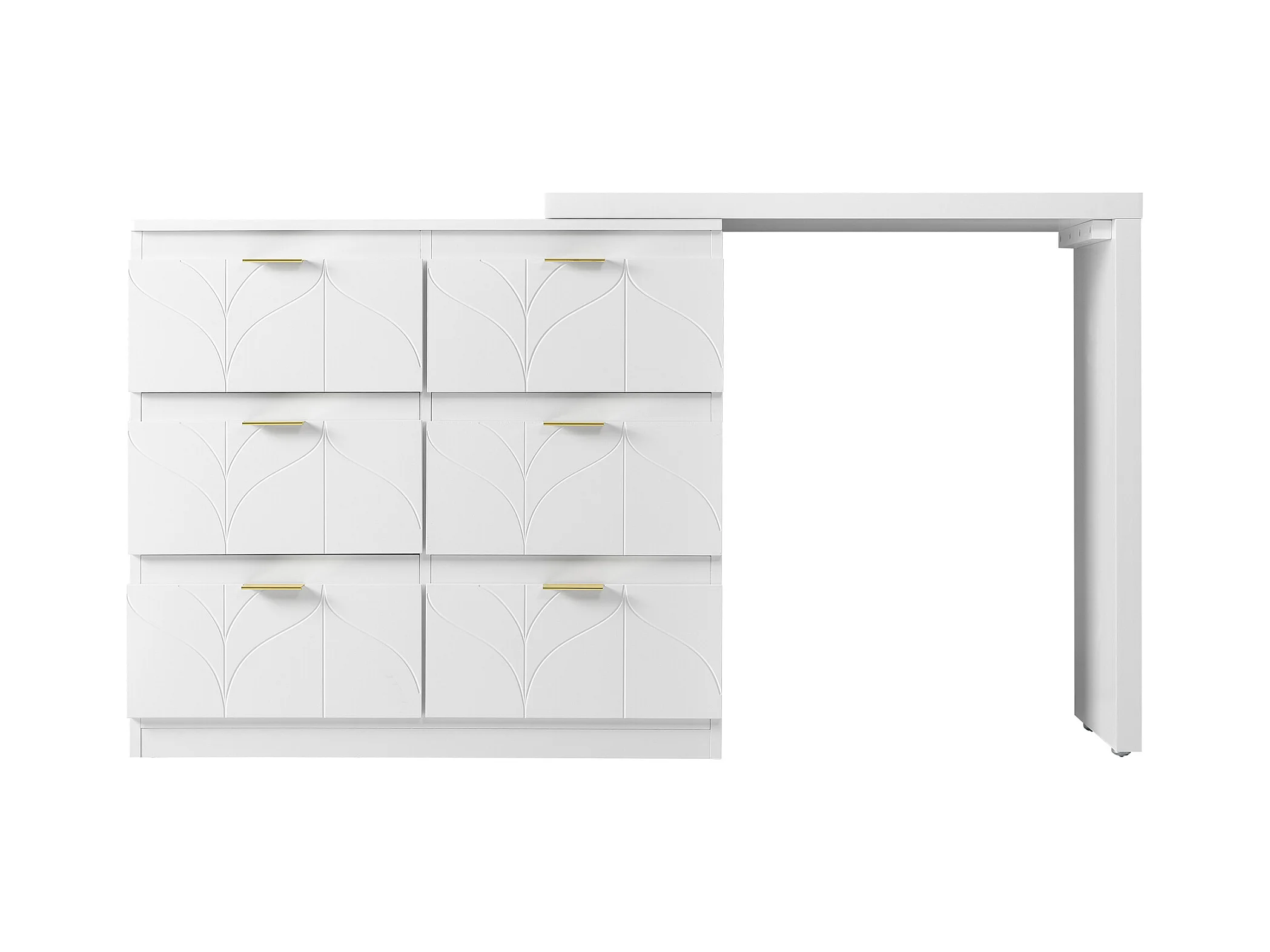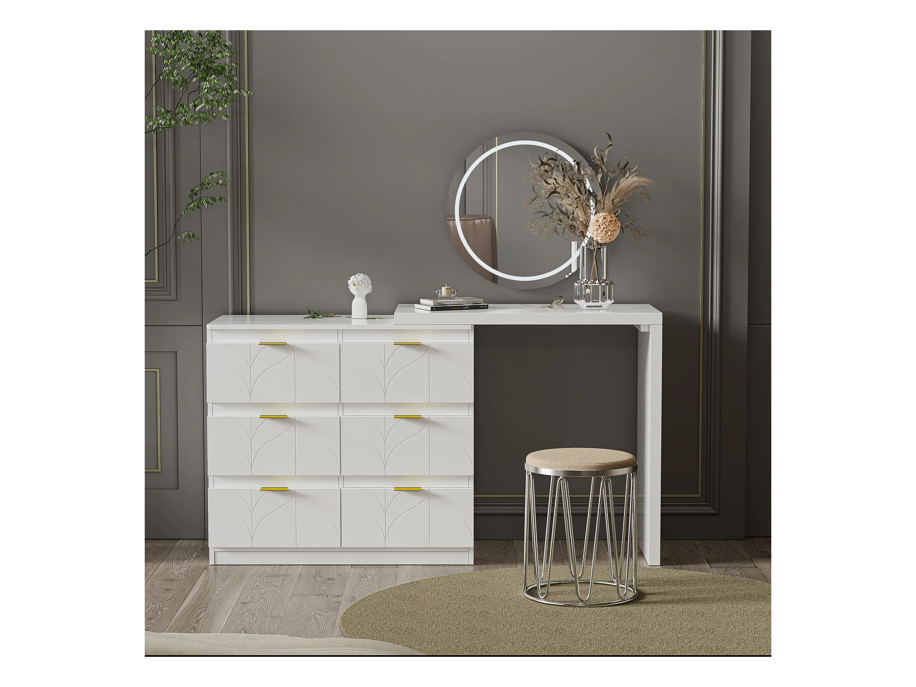 Coiffeuse 80x40x73 cm avec 6 tiroirs et plateau rotatif à 180° - Blanc(sans miroir ni tabouret)