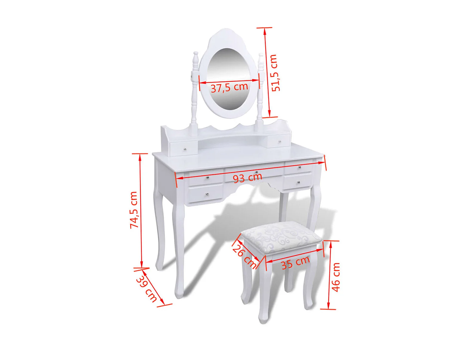 Coiffeuse 93 x 39 blanche 93 x 39 x 74.5 cm 02_0021269