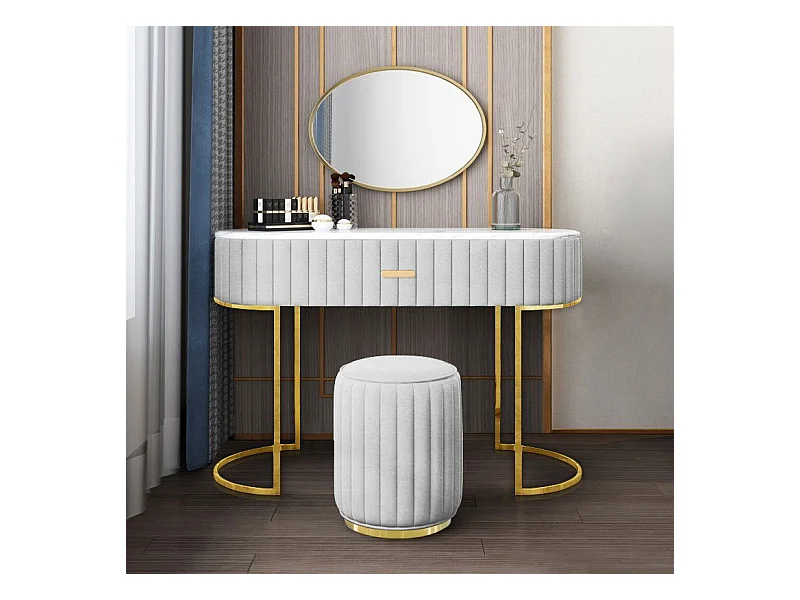 Coiffeuse À Tiroir Dessus De Table En Faux Marbre Vita - Couleurs - Velours Gris