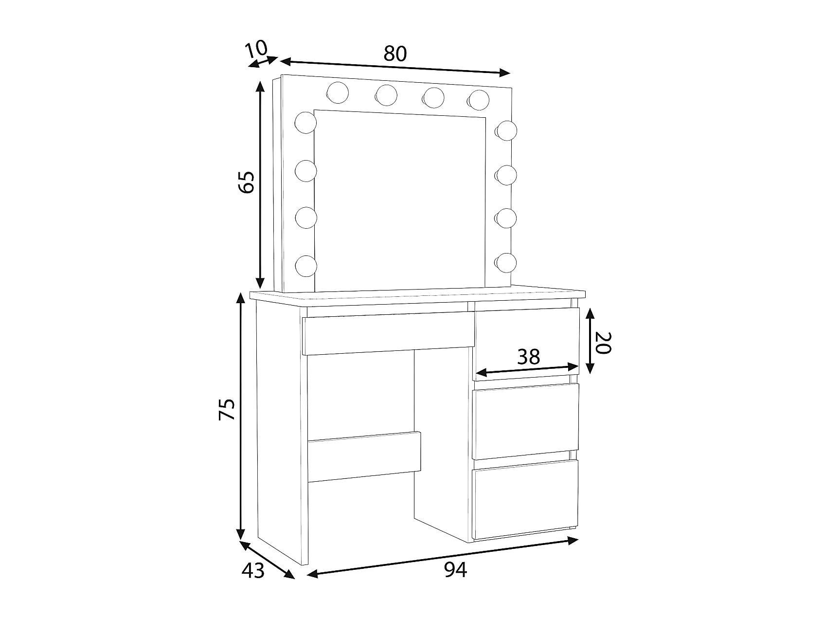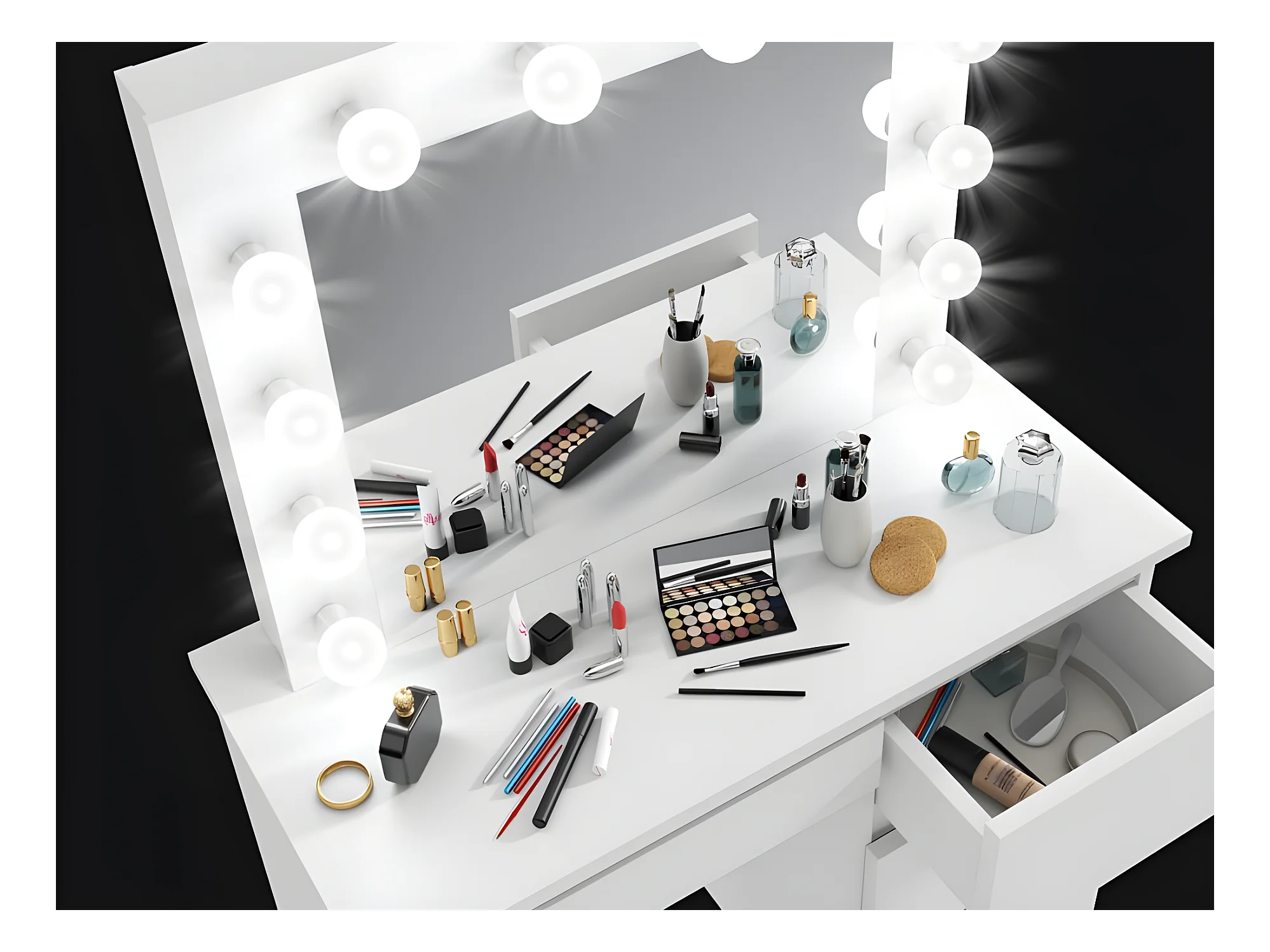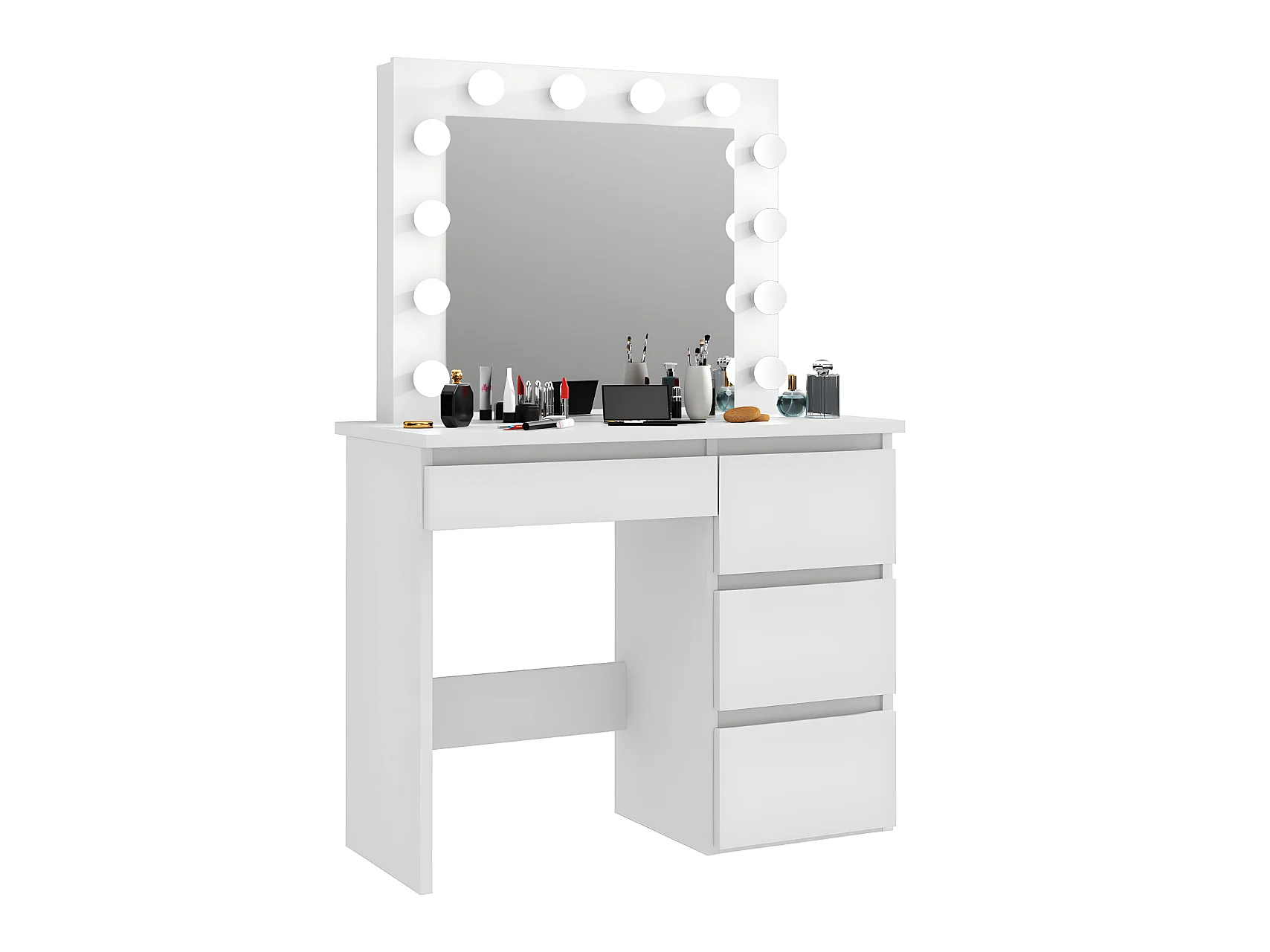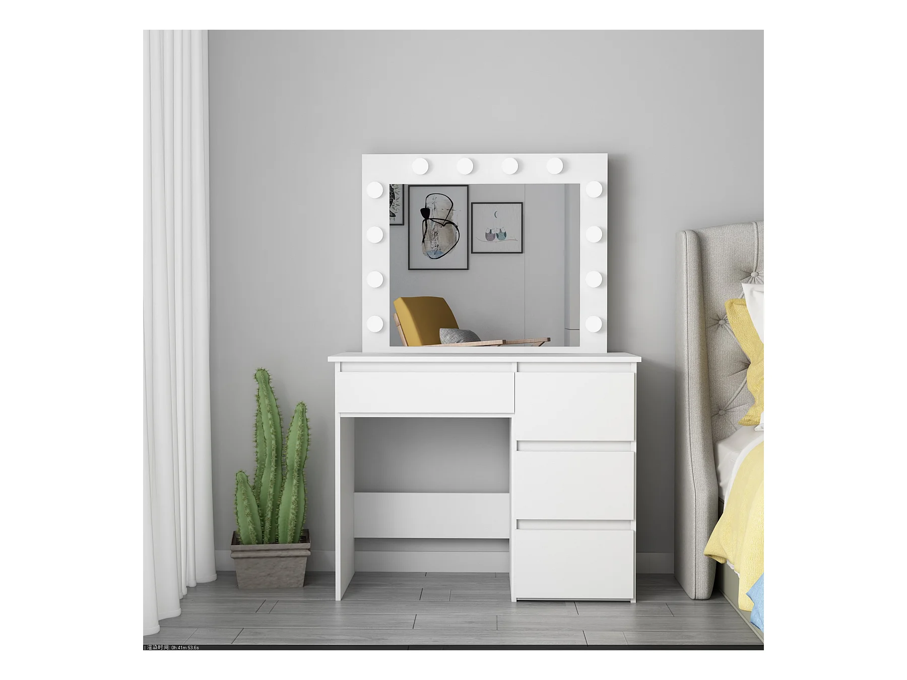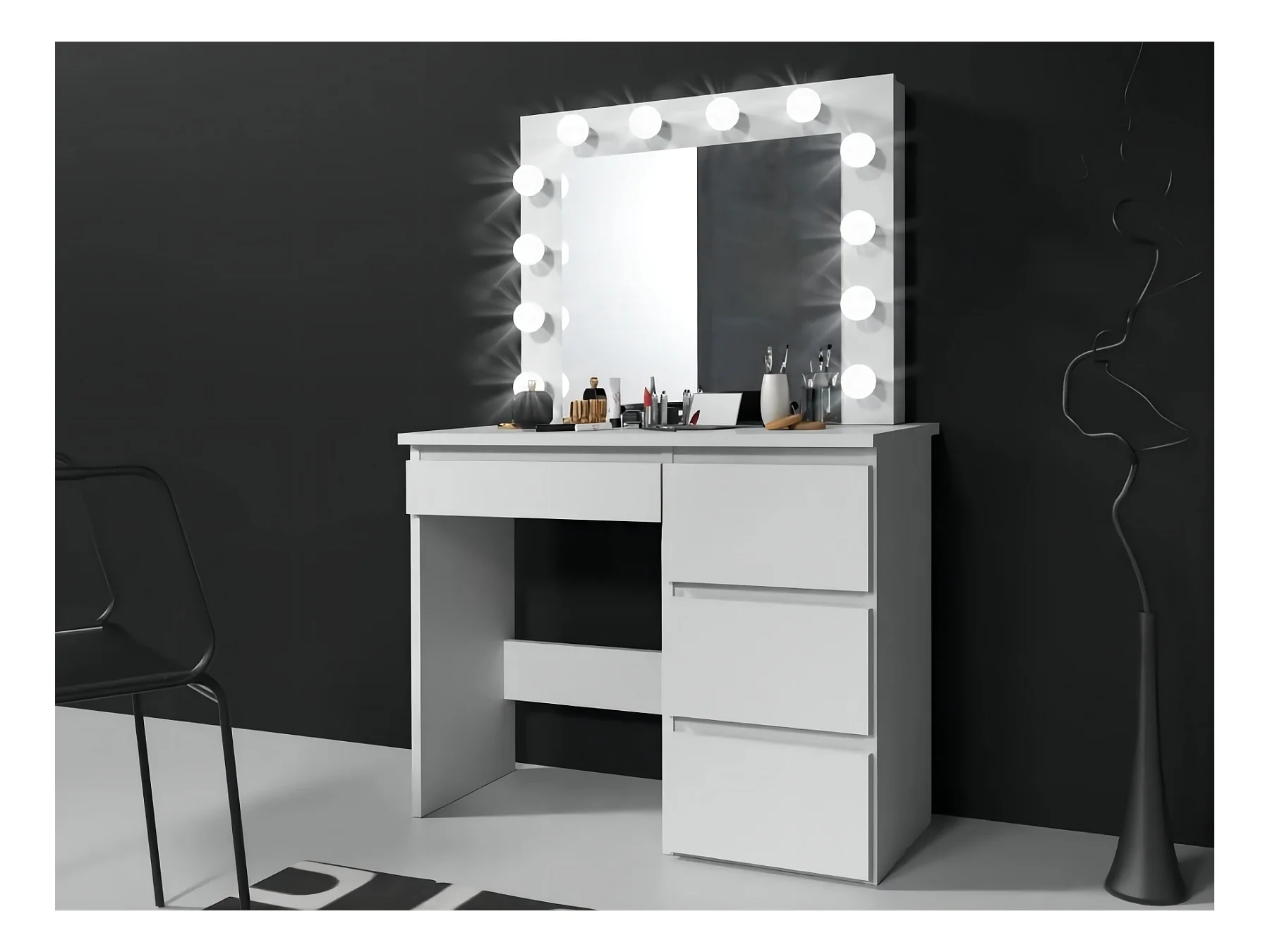 Coiffeuse avec 4 tiroirs et miroir LED coloris blanc - H75 x L94 x P43 cm