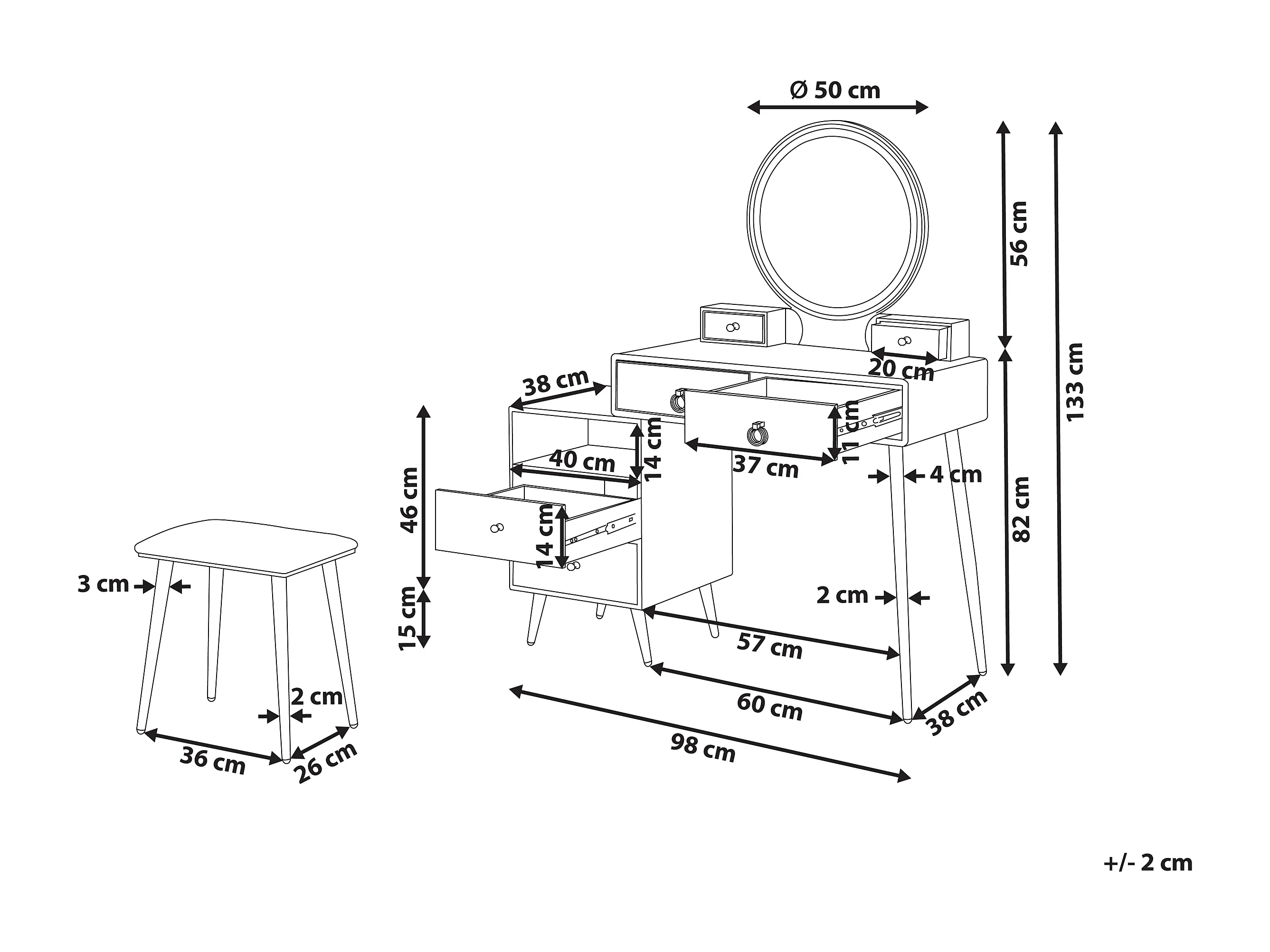 Coiffeuse avec miroir et tabouret YVES LED Blanc