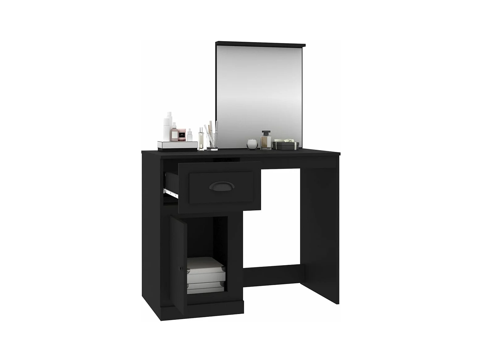 Coiffeuse avec miroir noir 90x50x132,5 cm bois d'ingénierie