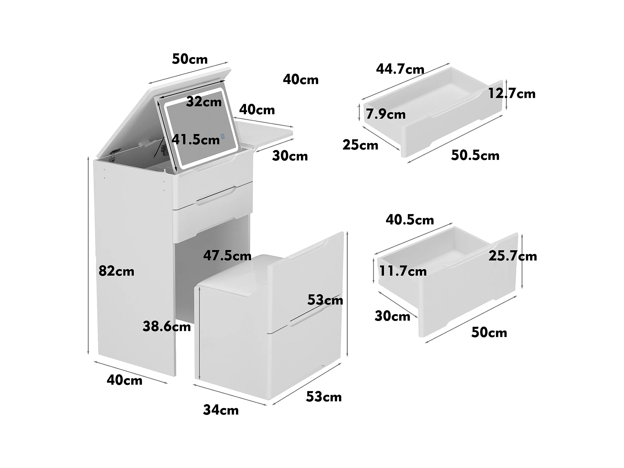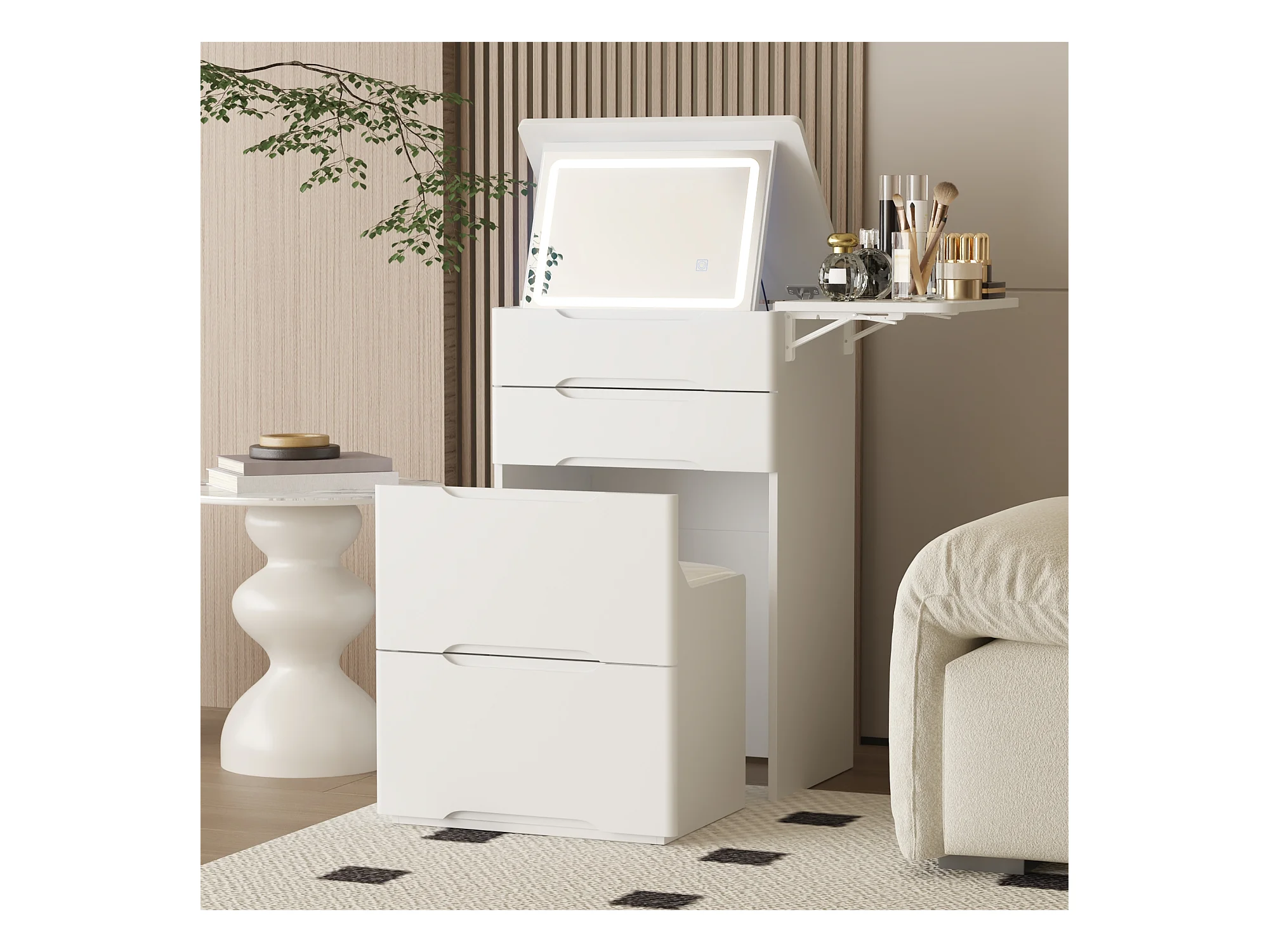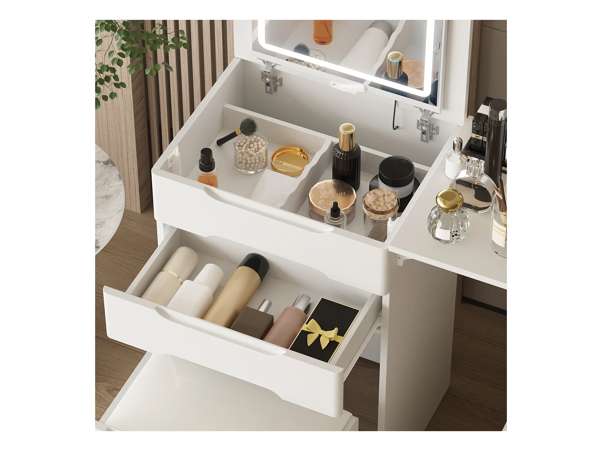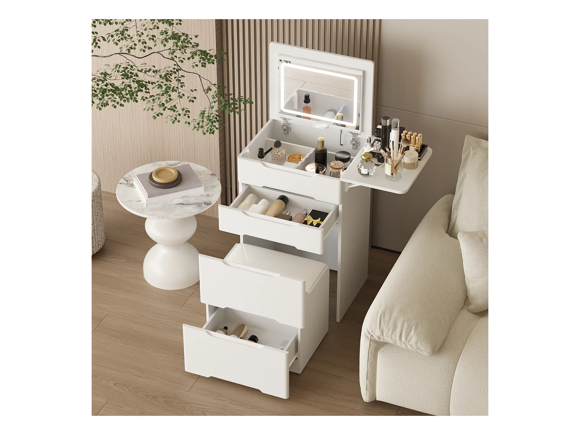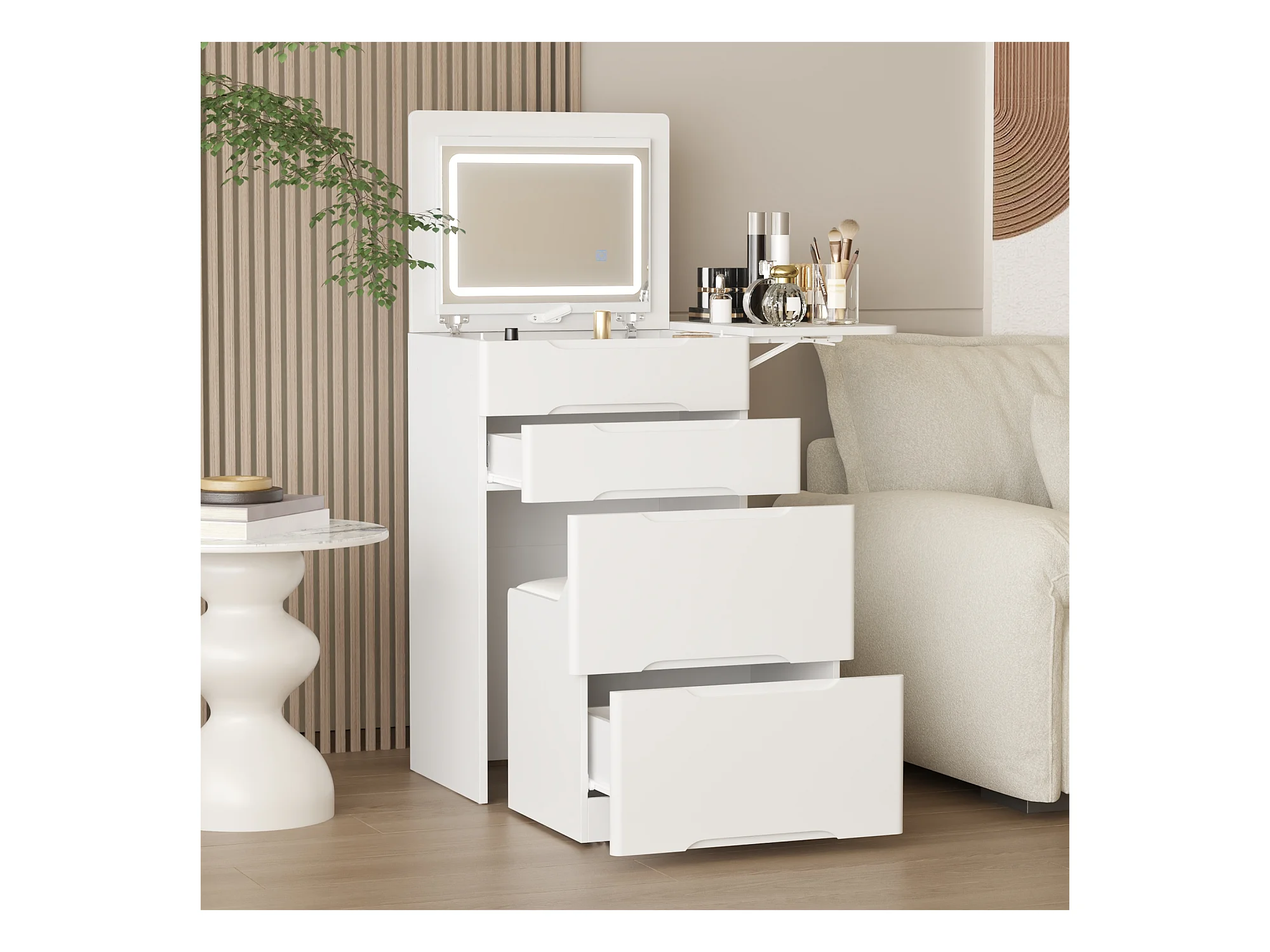 Coiffeuse avec miroir rabattable,éclairage tricolore,tiroirs,Salon,‎Blanc,50x40x81.5cm