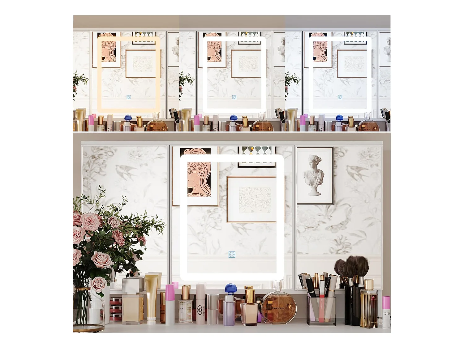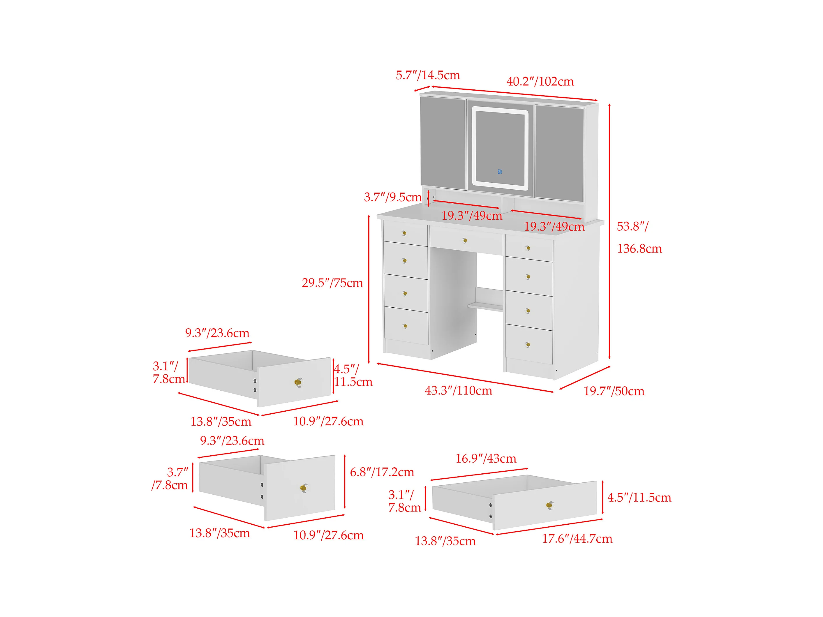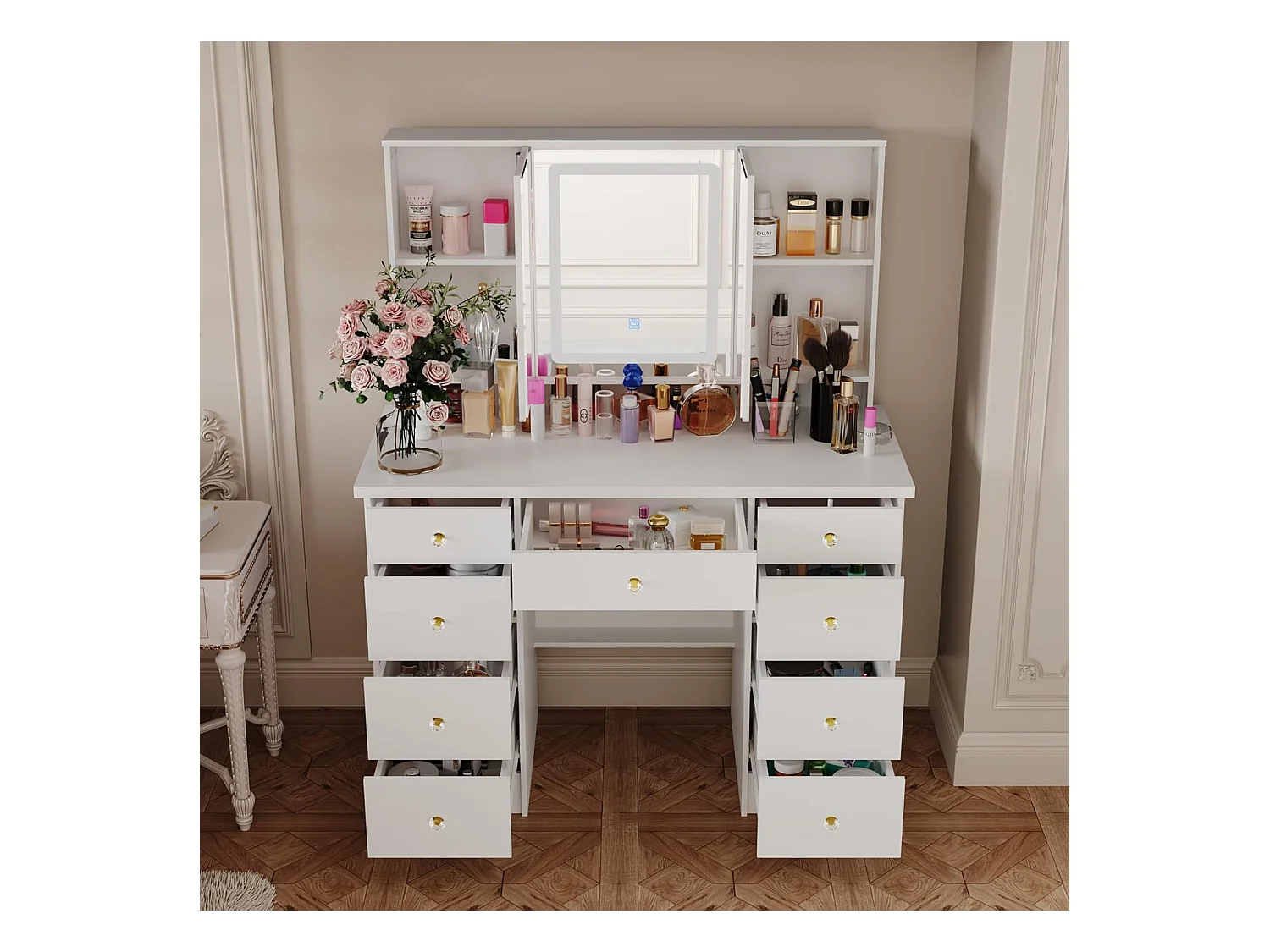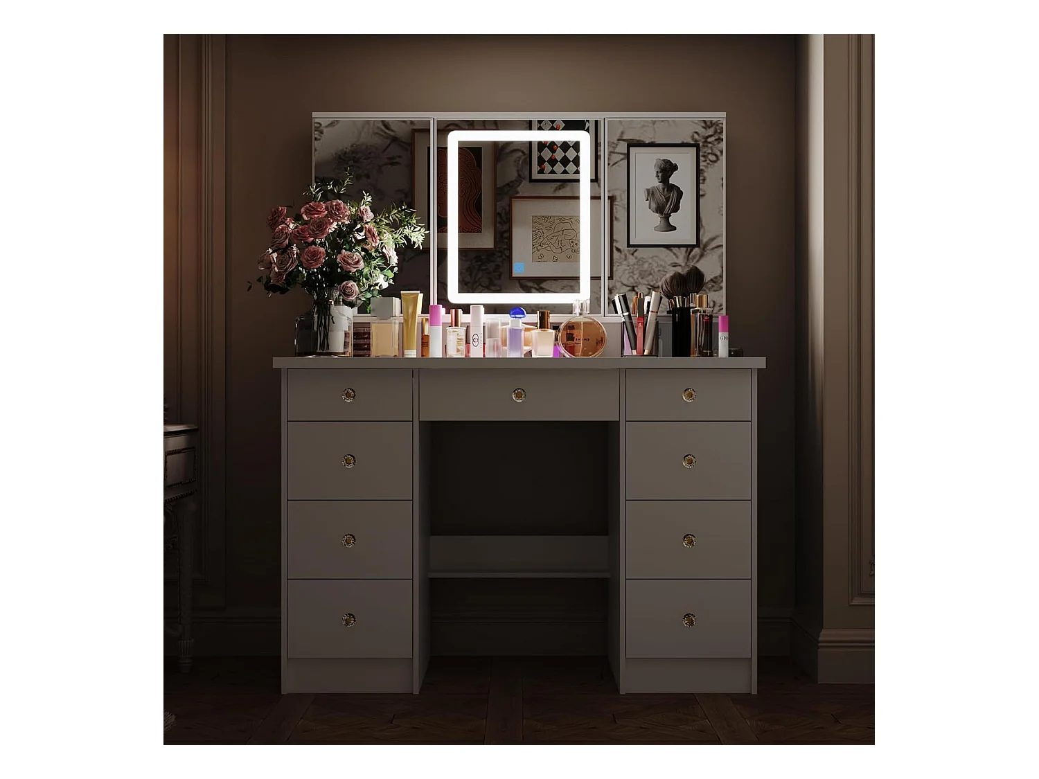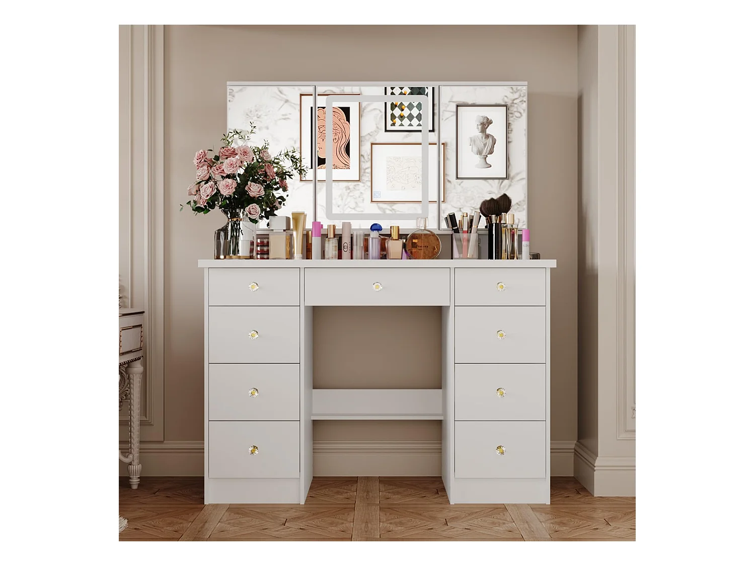 Coiffeuse avec éclairage LED et miroir rectangulaire surdimensionné 50x110x137cm Blanc