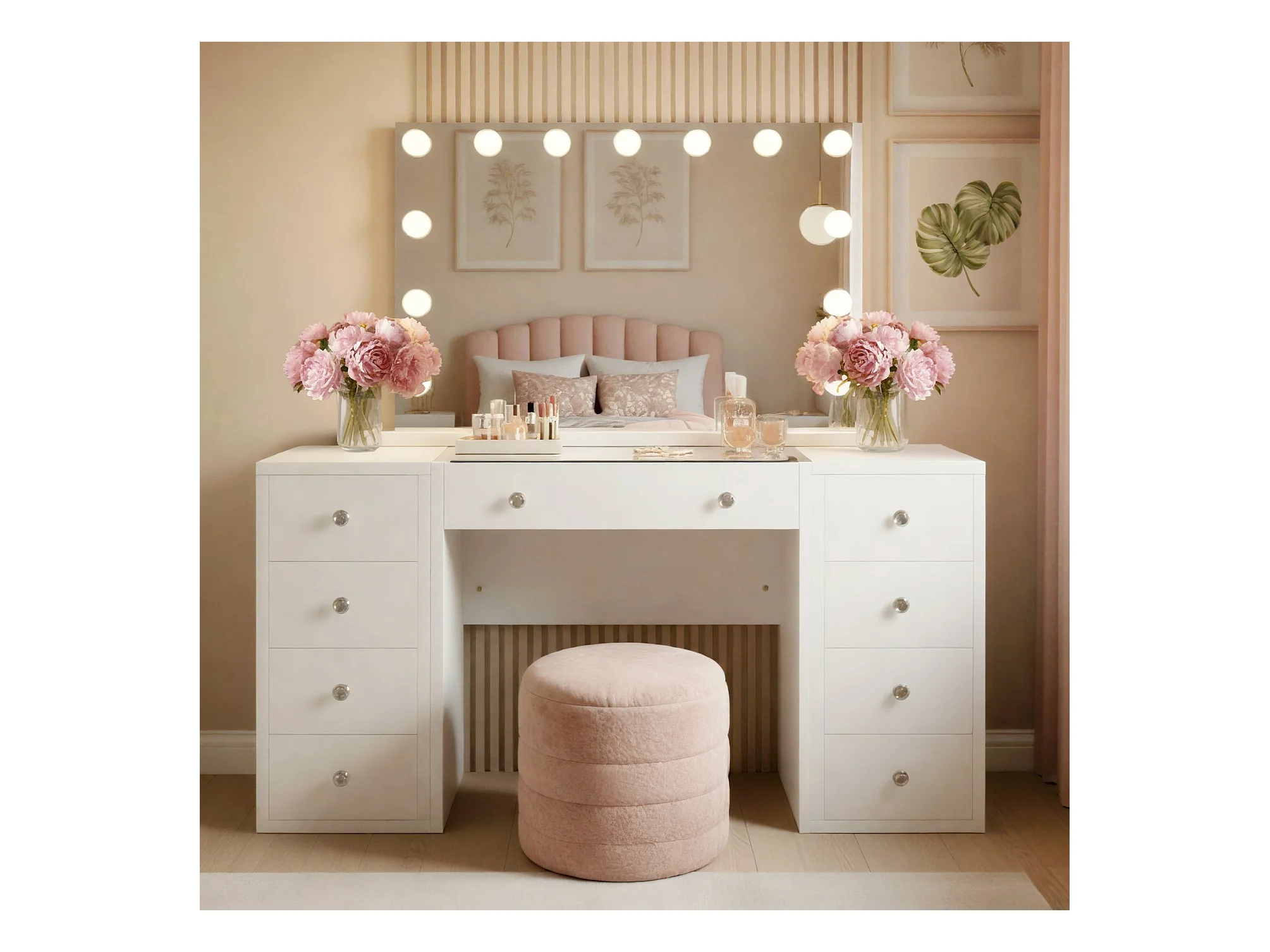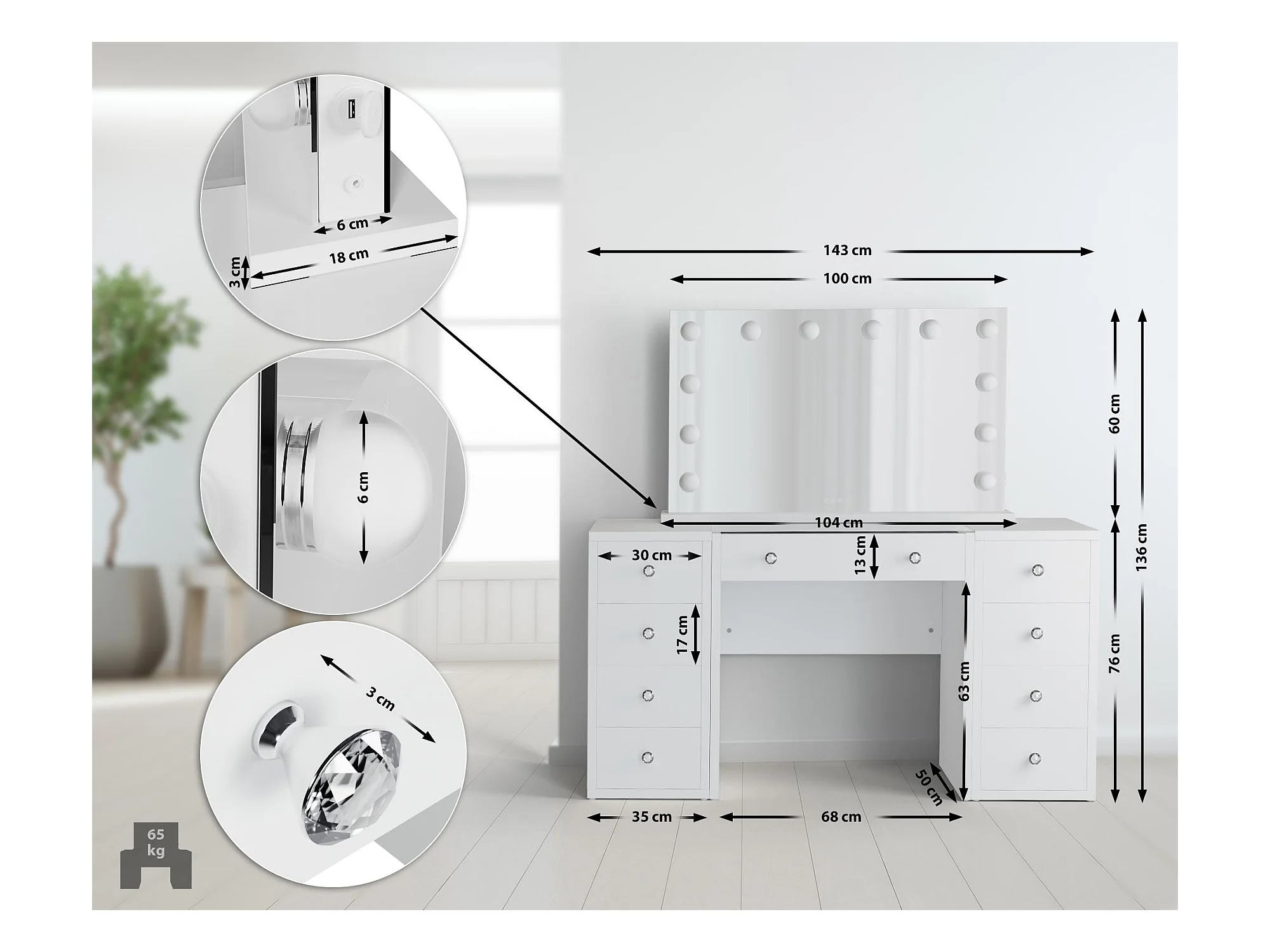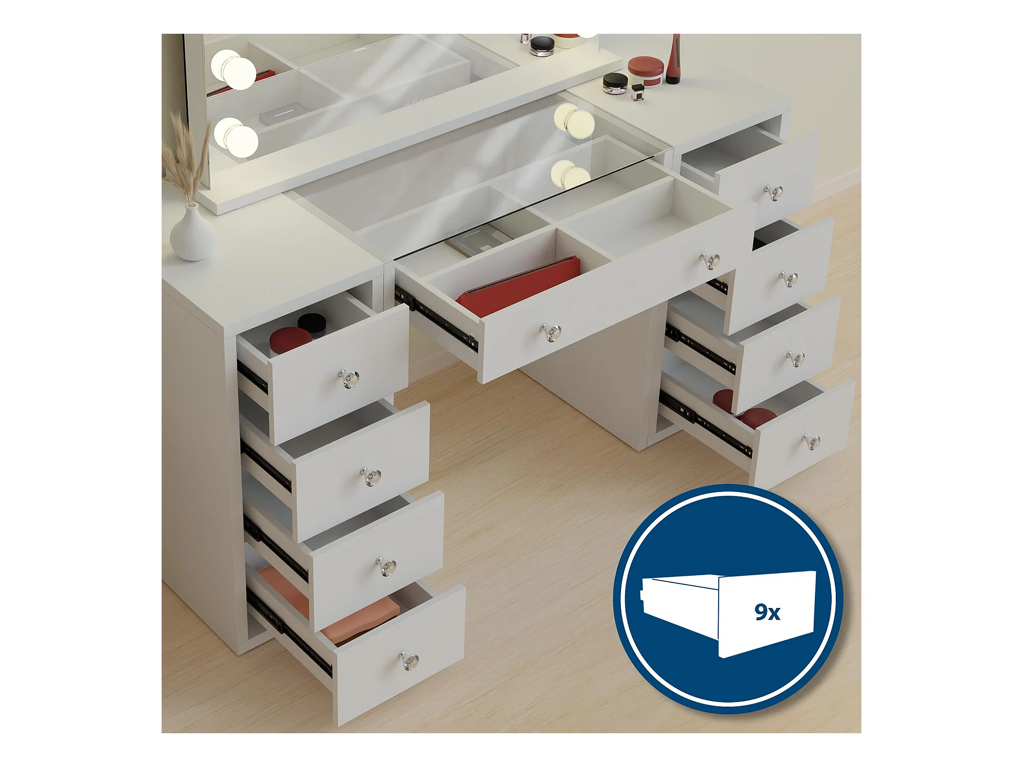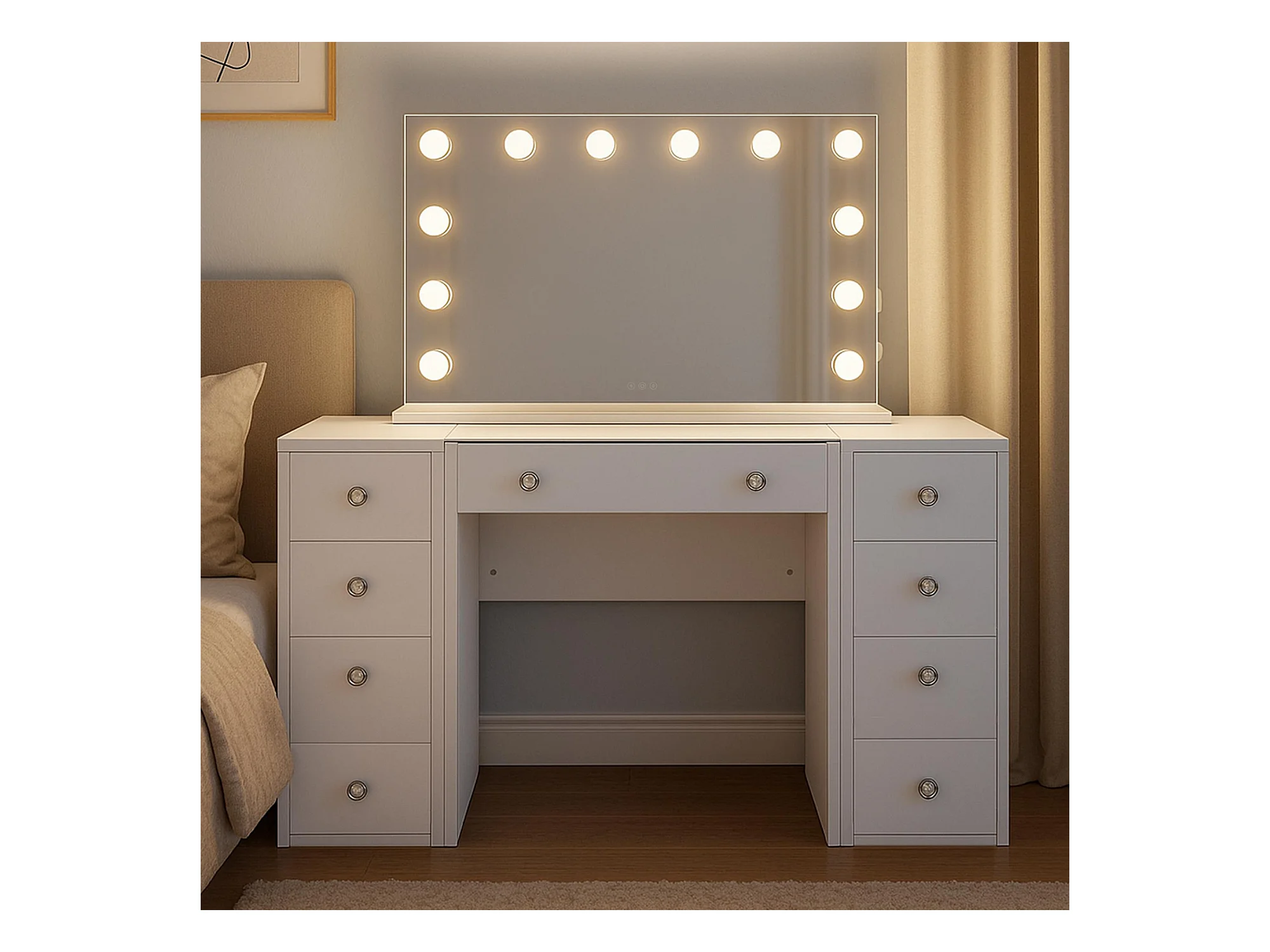 Coiffeuse - carré - Bois - 143 x 50 cm - Blanc - Tiline