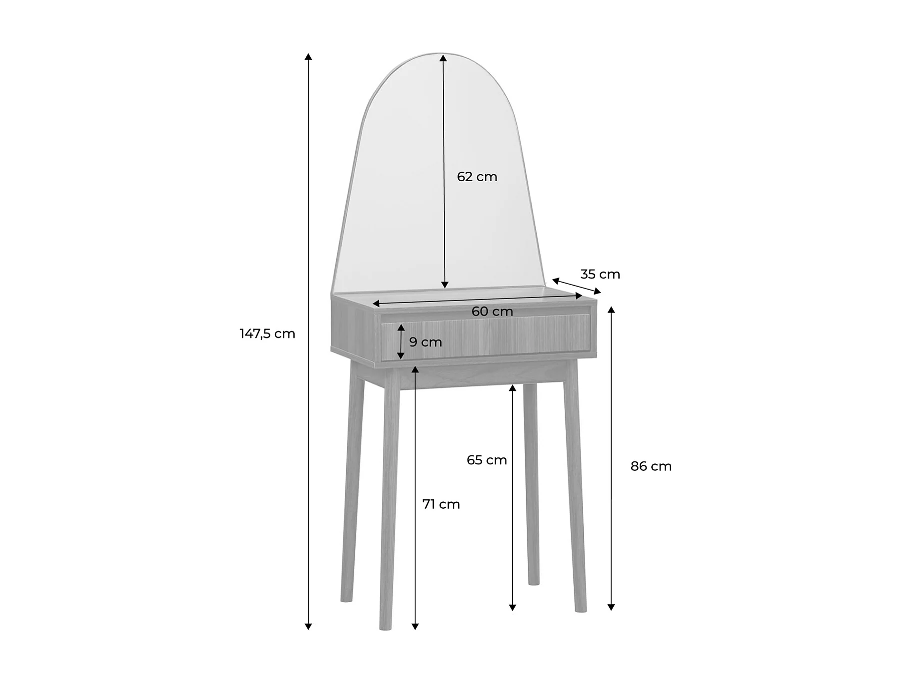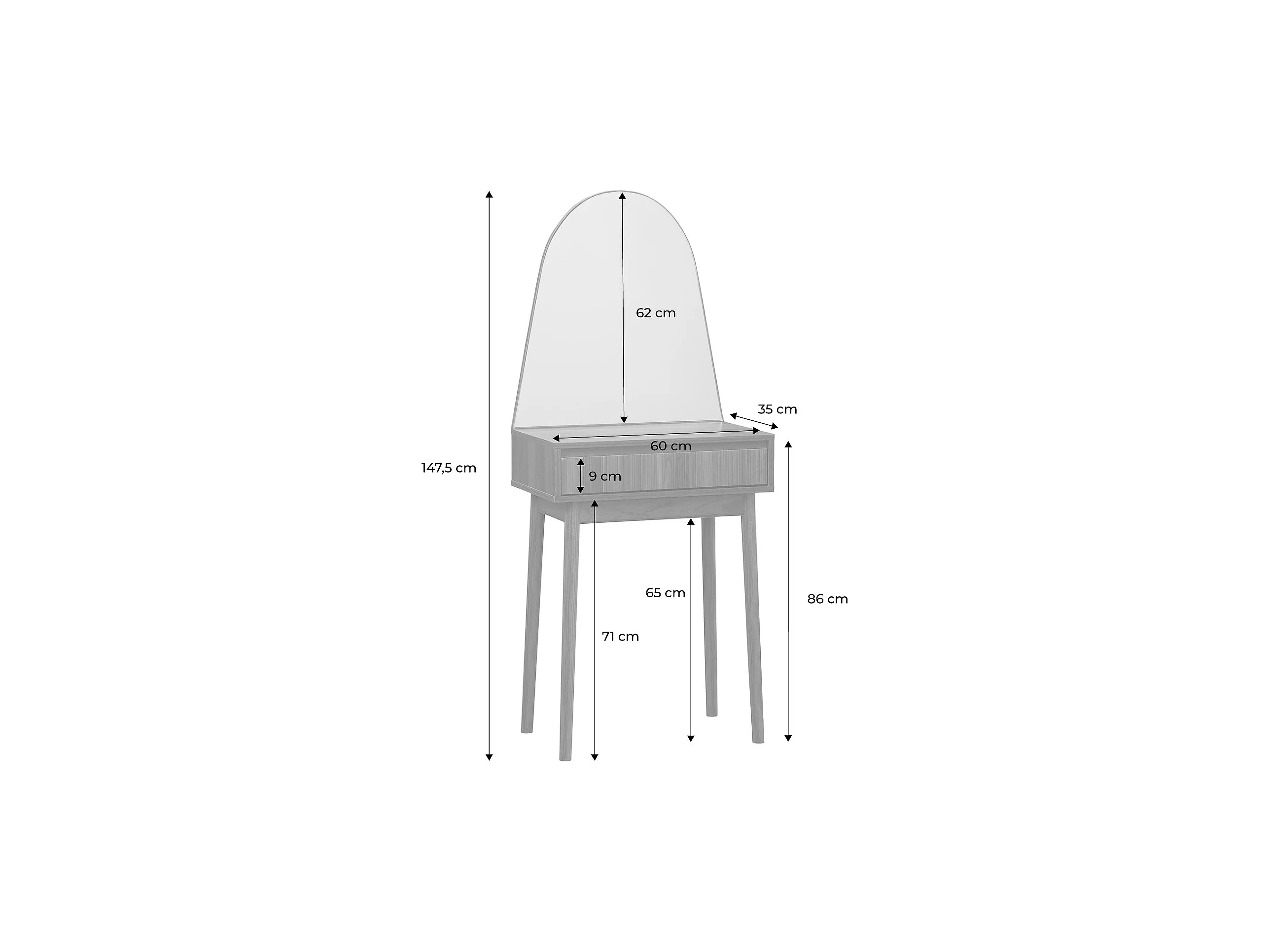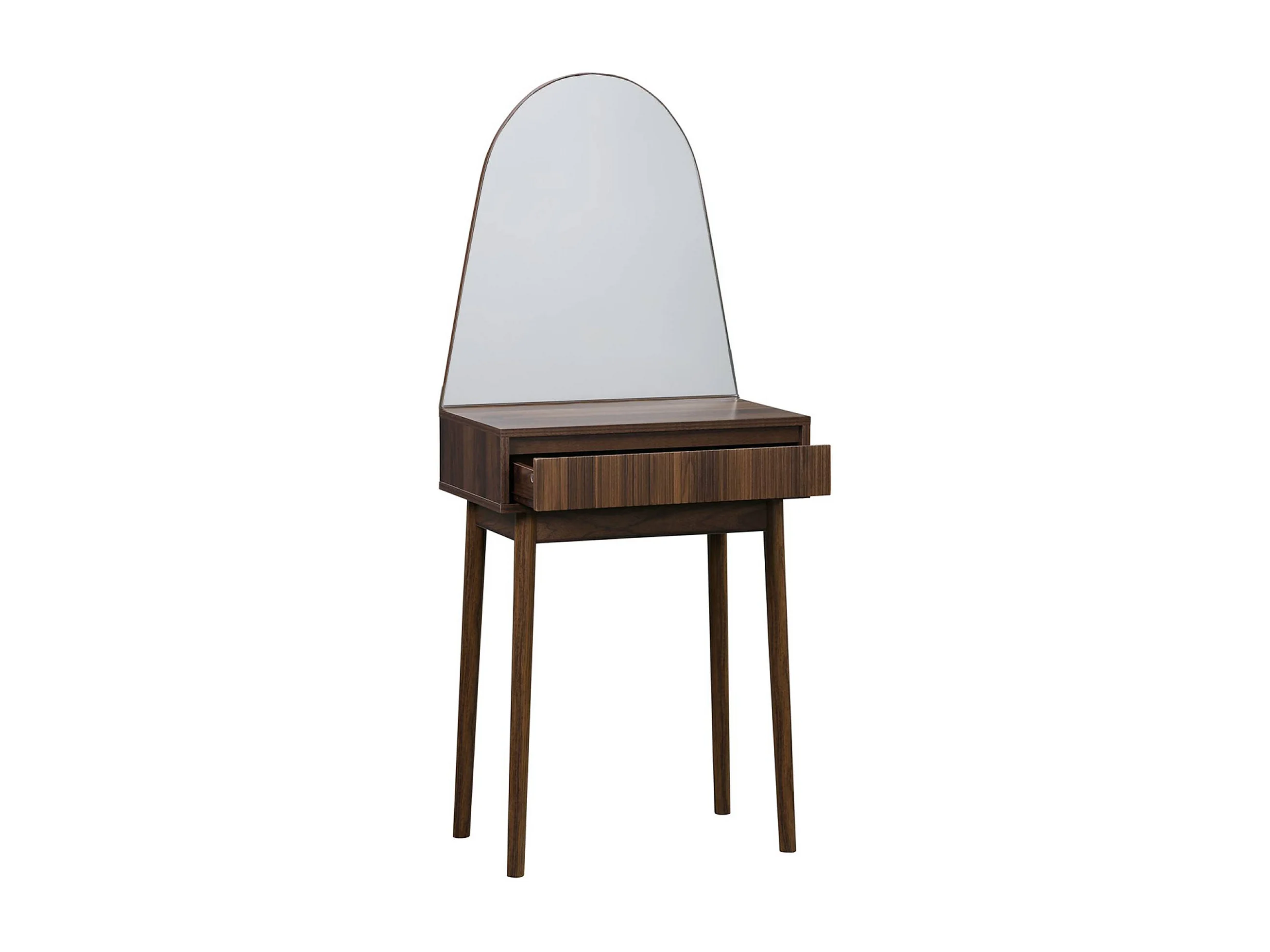 Coiffeuse décor bois LINEAR miroir arrondi 1 tiroir 60 cm. façade striée. Noyer