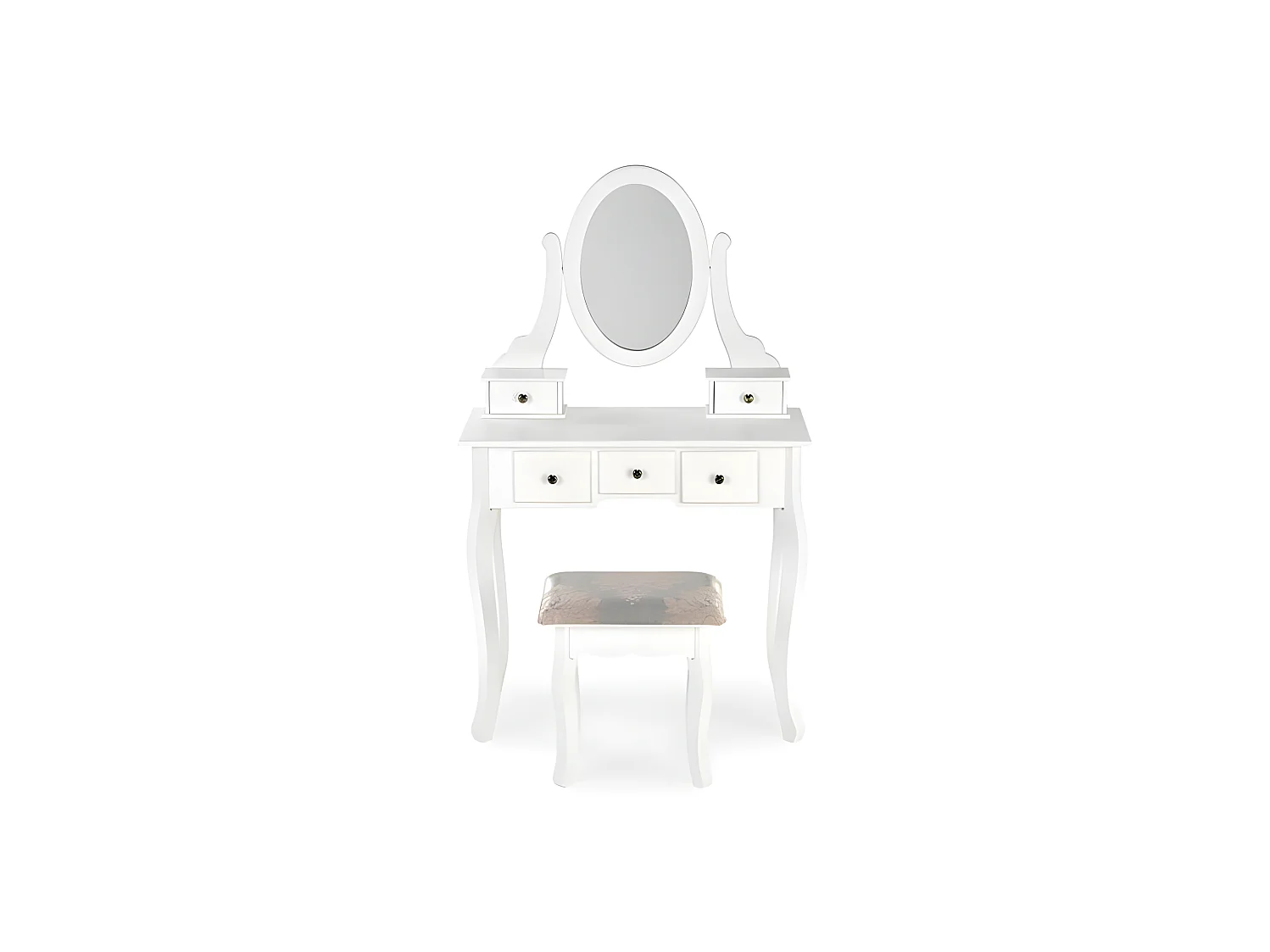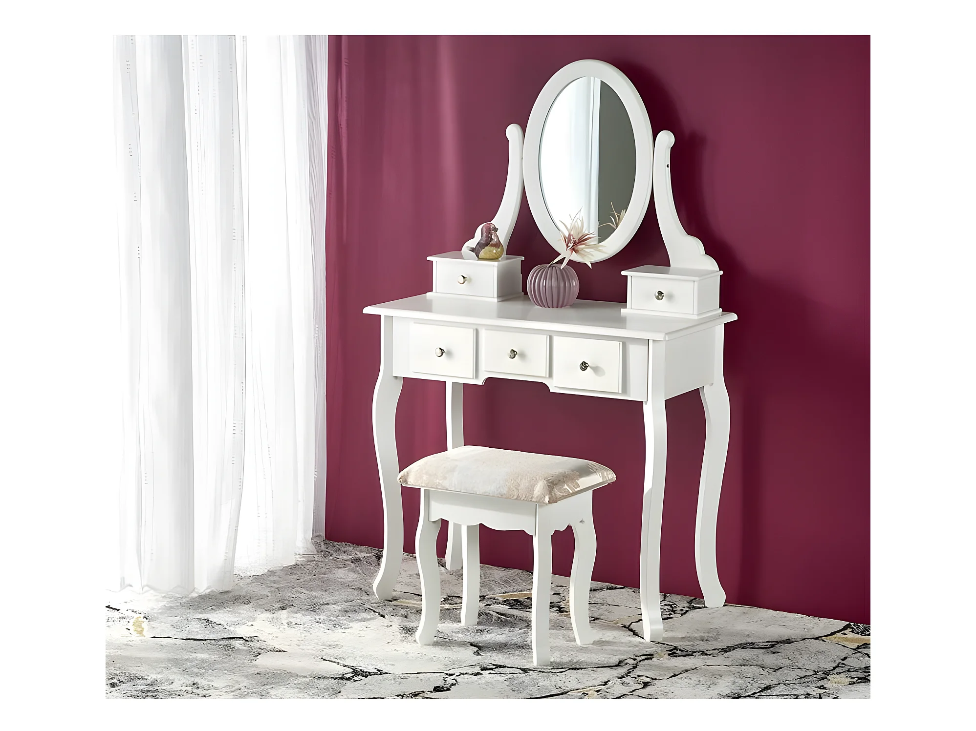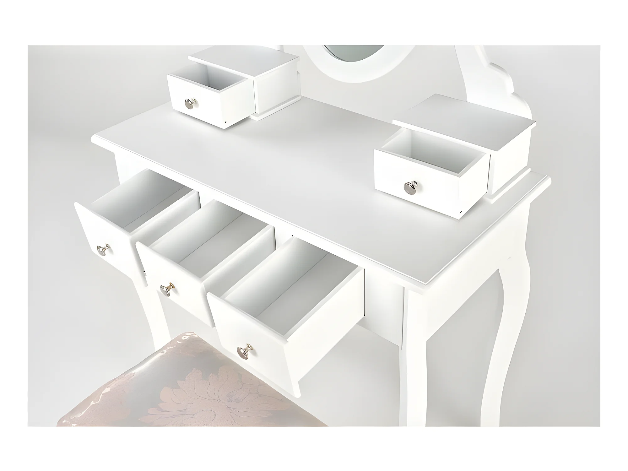 Coiffeuse design blanc laqué + miroir + banc Laki