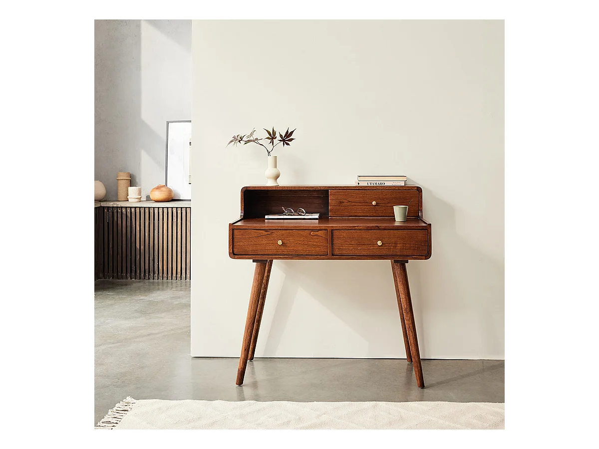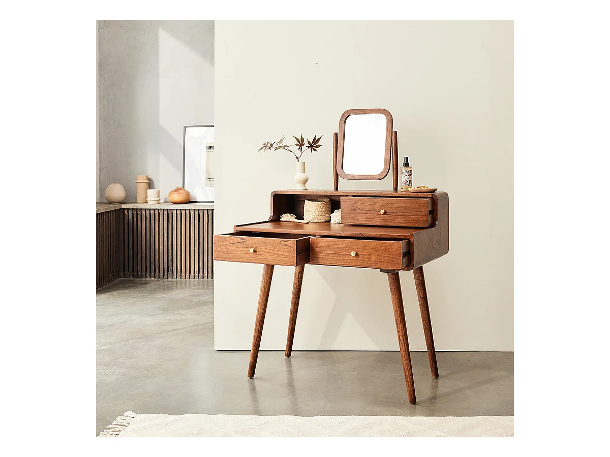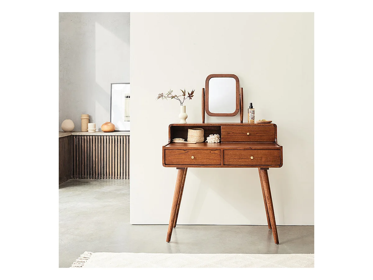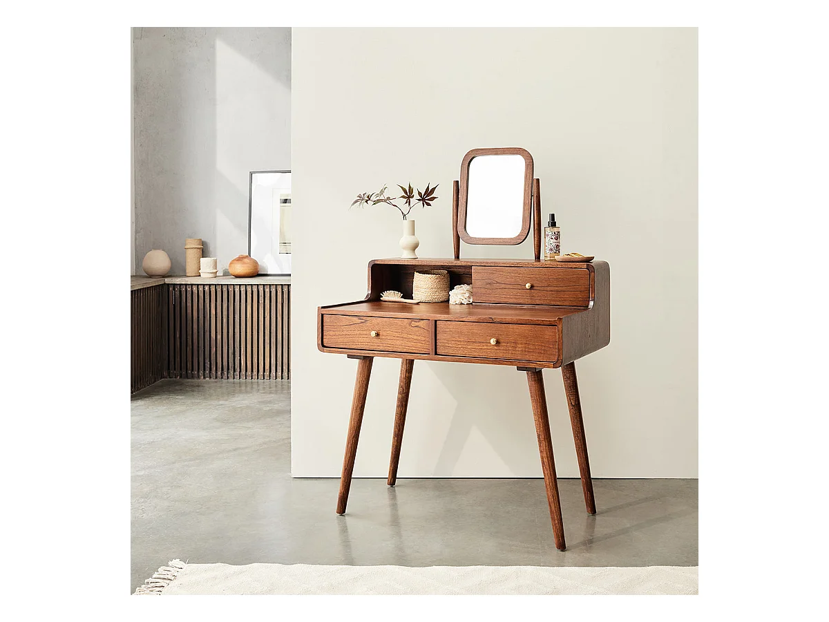 Coiffeuse en mindi massif finition noyer