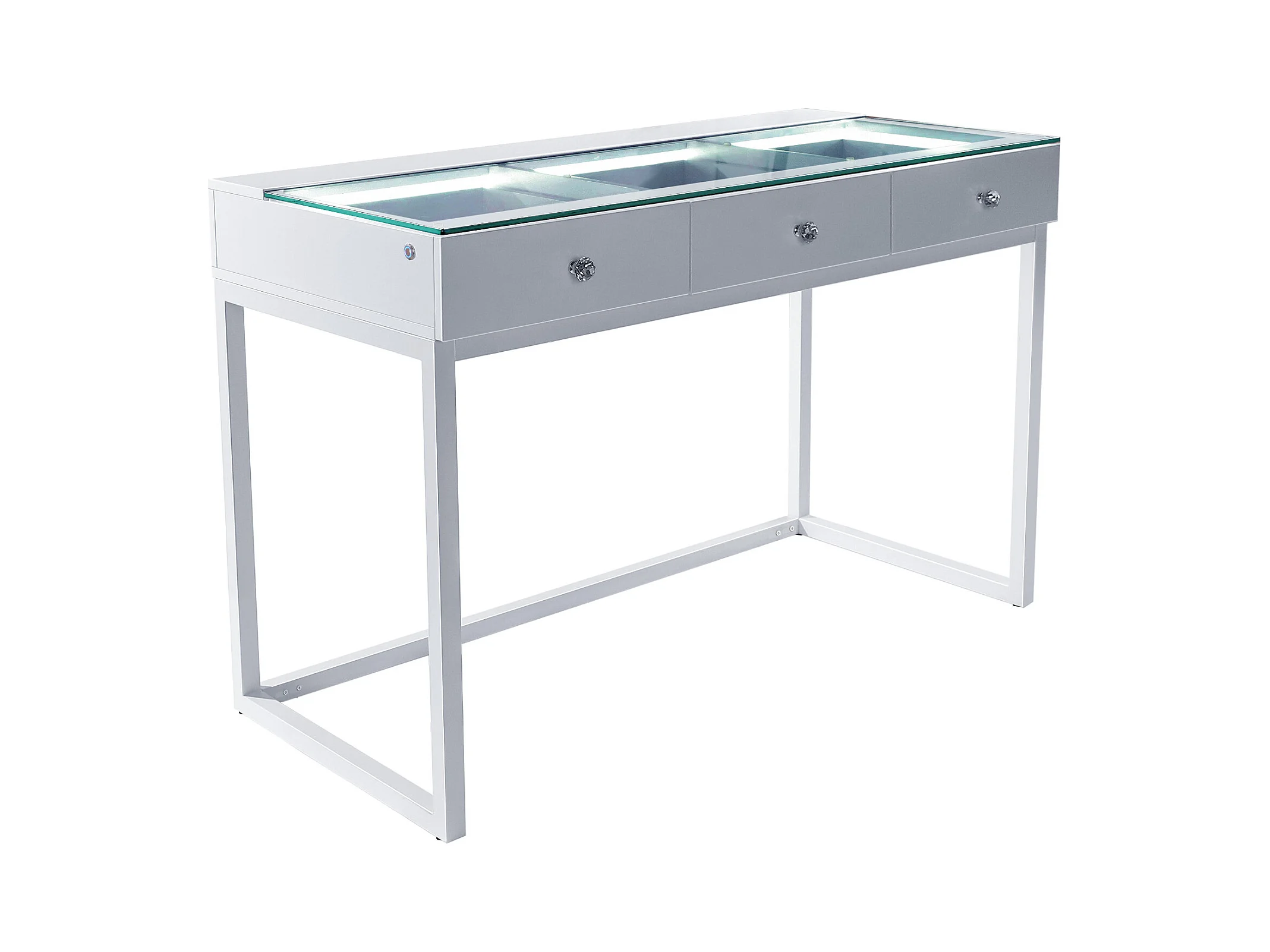 Coiffeuse Verre LED Intégrée, 3 Tiroirs - 120 x 55 cm