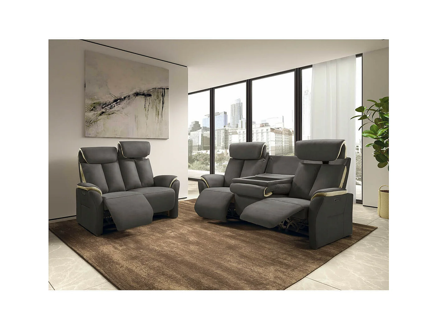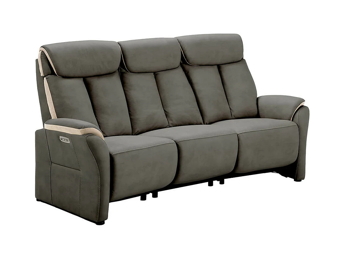 COIMBRA - Canapé Relax Electrique 3 Places New Nobuck Gris Foncé et Beige