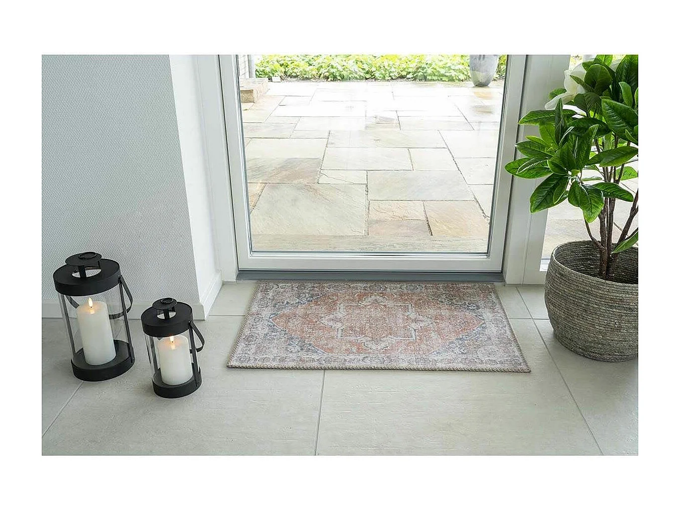 COLABA - Tapis d'Entrée 50x80cm avec Motifs Orange et Bleu