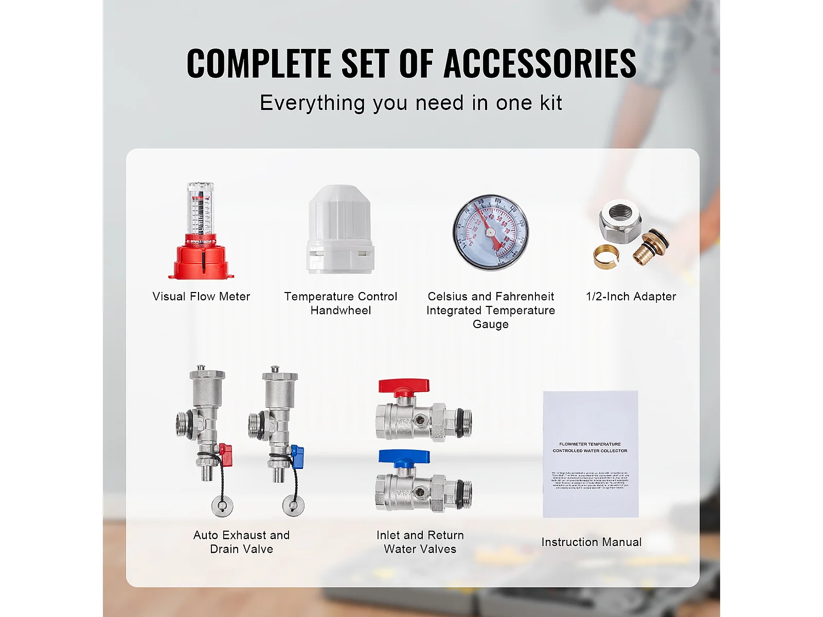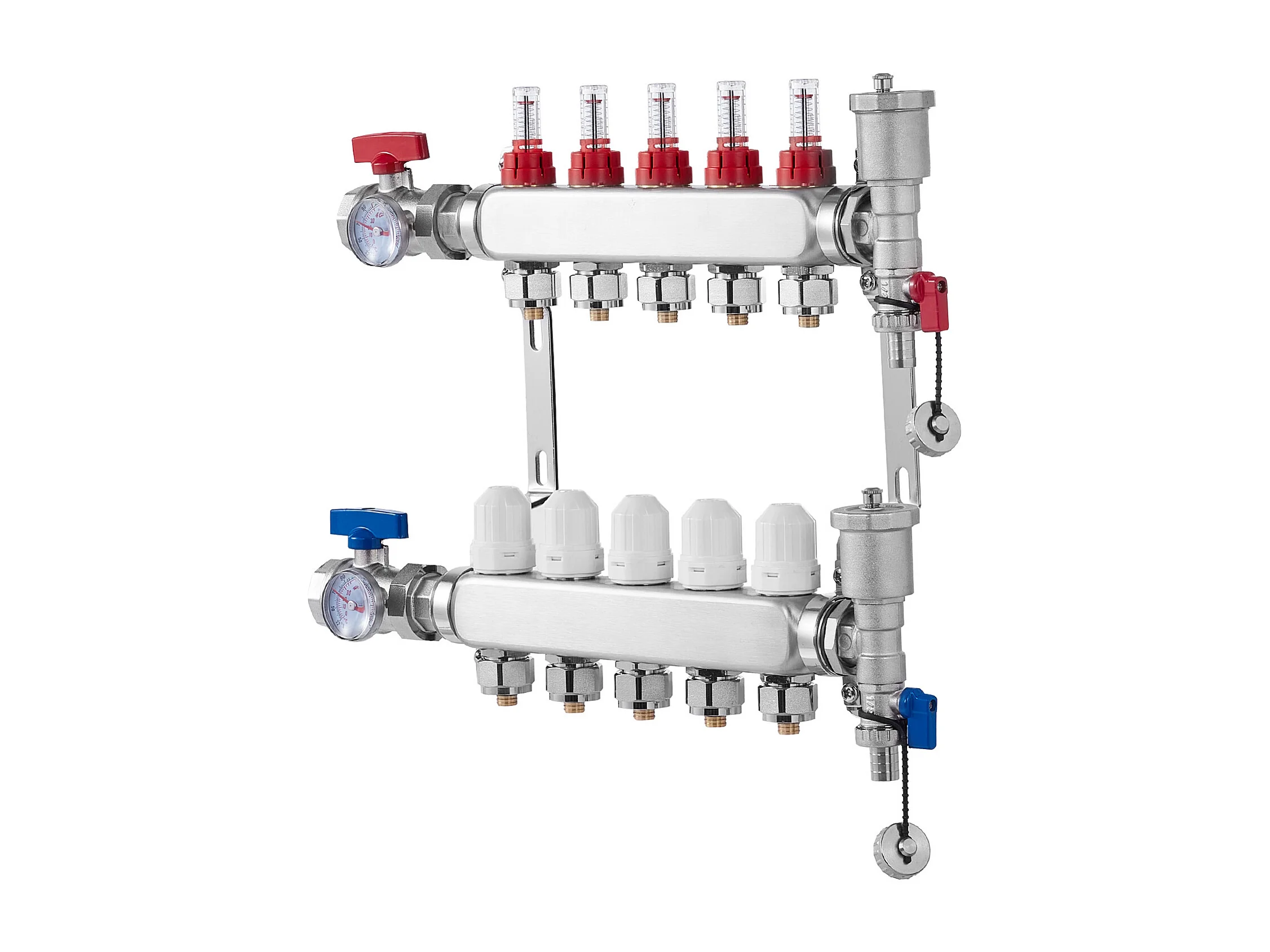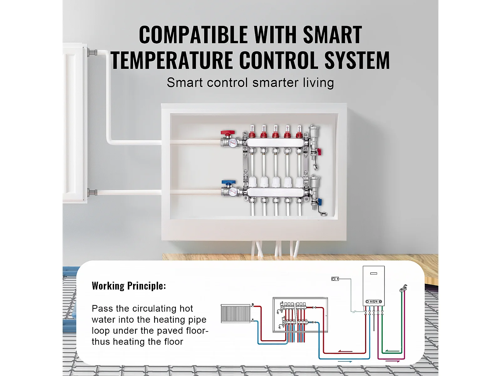 Collecteur de Chauffage Radiant SucceBuy à 5 Branches Ensemble de Collecteur de Chauffage par le Sol avec Tubes PEX de 2.54/5.08cm