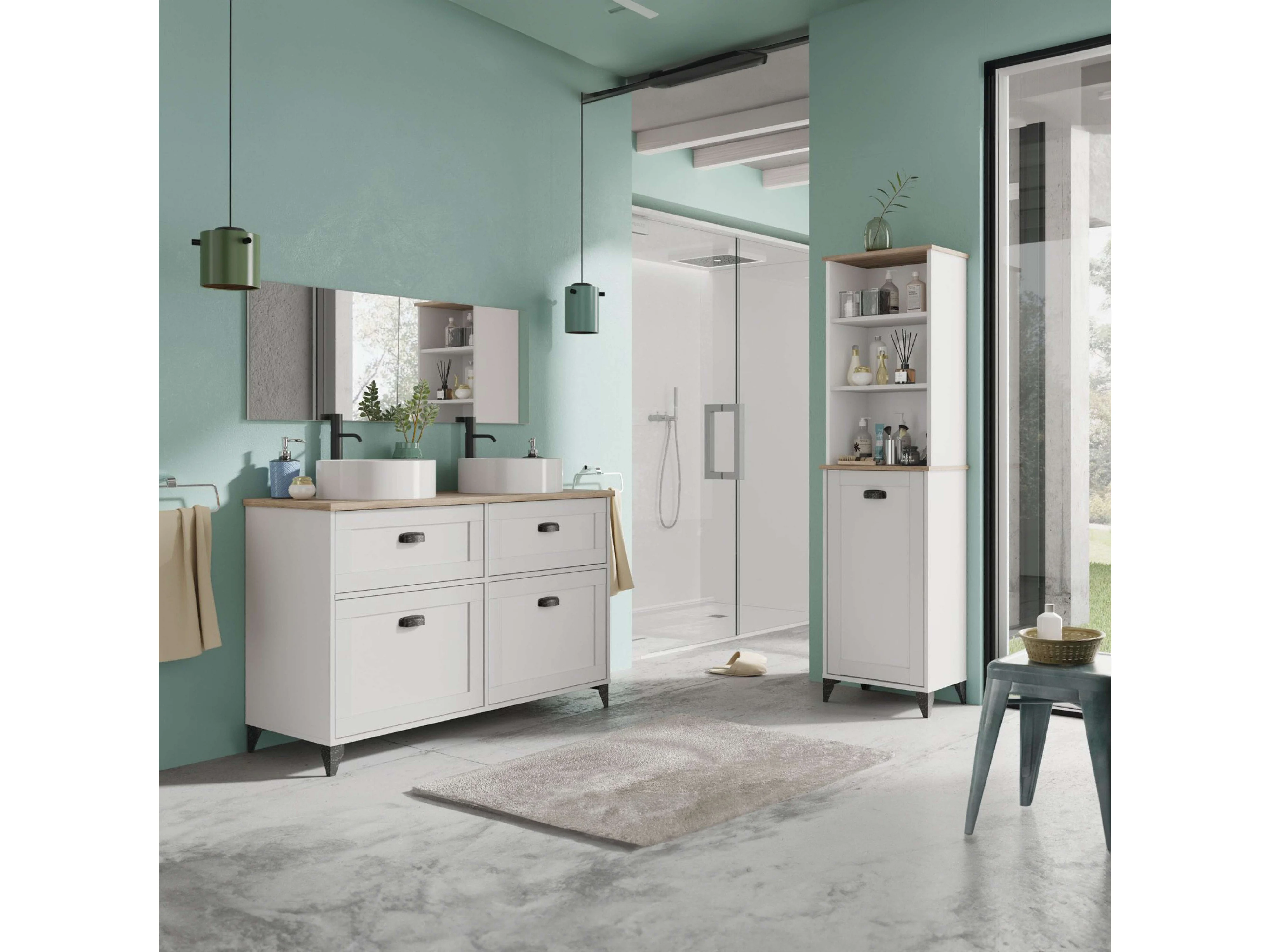 Colonne auxiliaire de salle de bain Toscane en chêne cambrien et blanc 47x168x31 cm