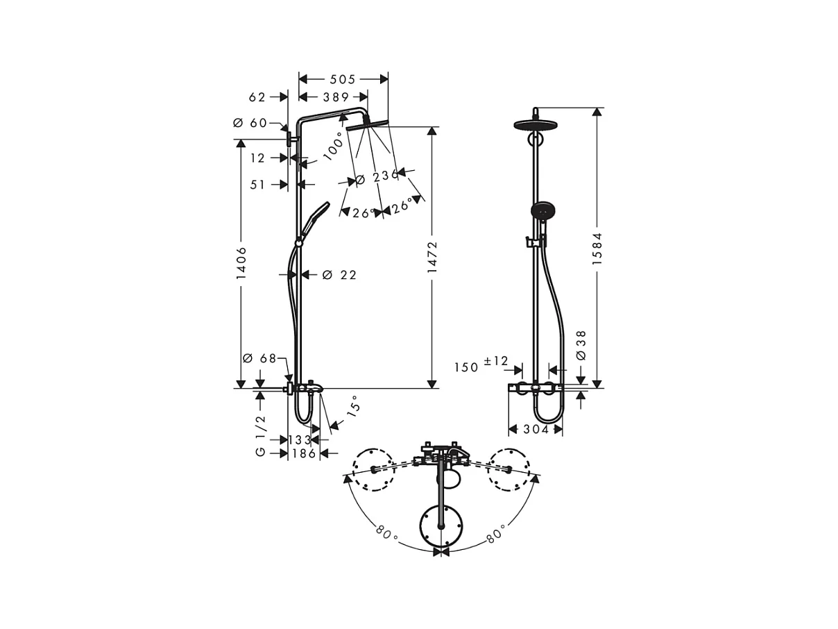 Colonne bain douche thermostatique HANSGROHE Raindance S 240 chromé