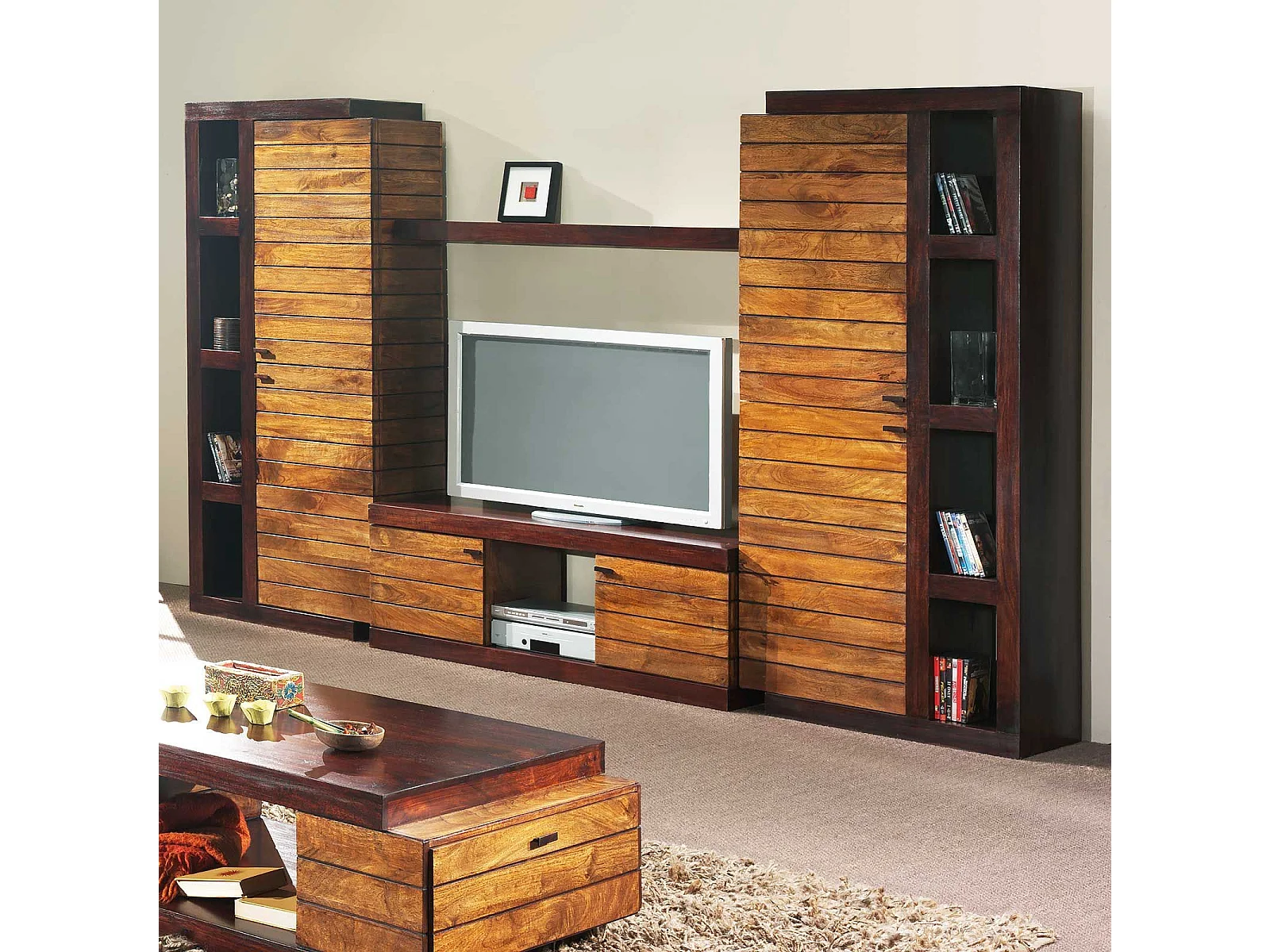Colonne bibliothèque bois bicolore - Charnière gauche | Manguier Herods