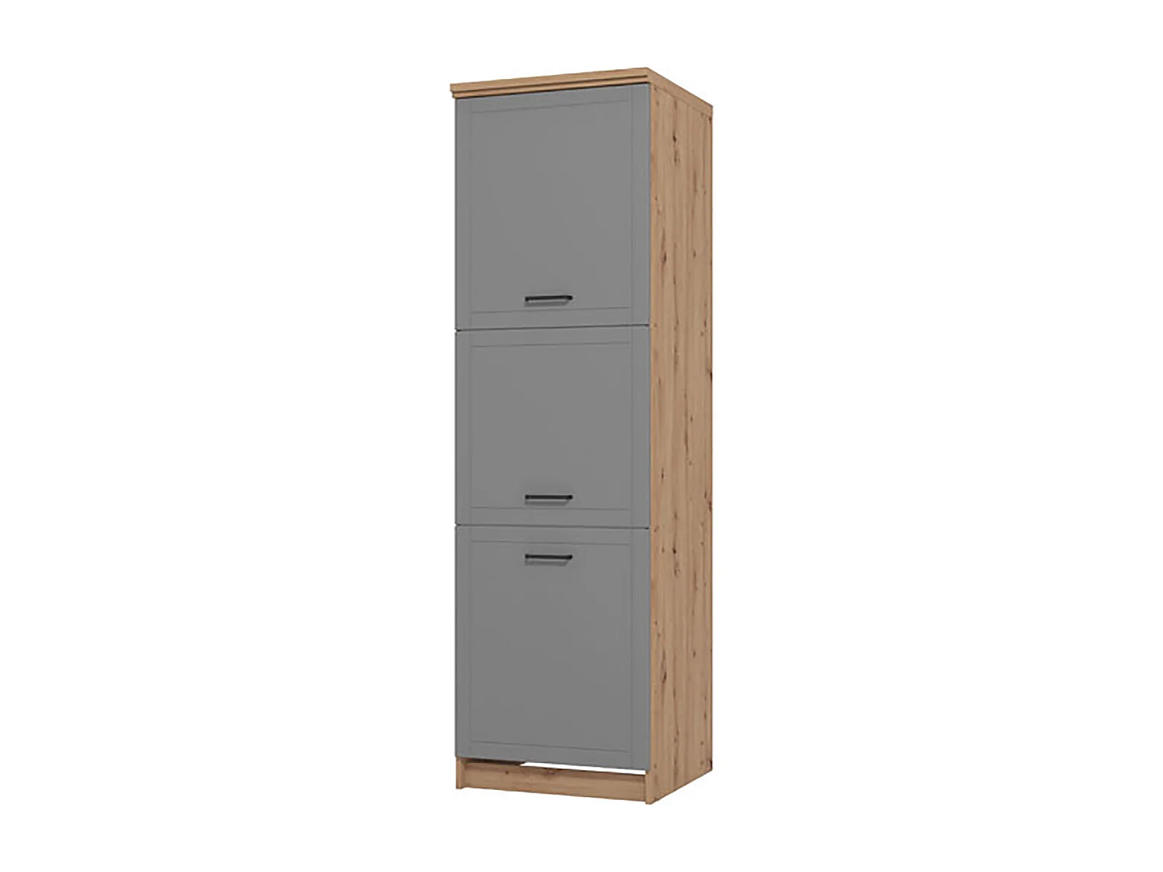 Colonne de cuisine 3 portes couleur gris mat / chêne artisan - Longueur 60 x Profondeur 57.5 x Hauteur 218.5 cm