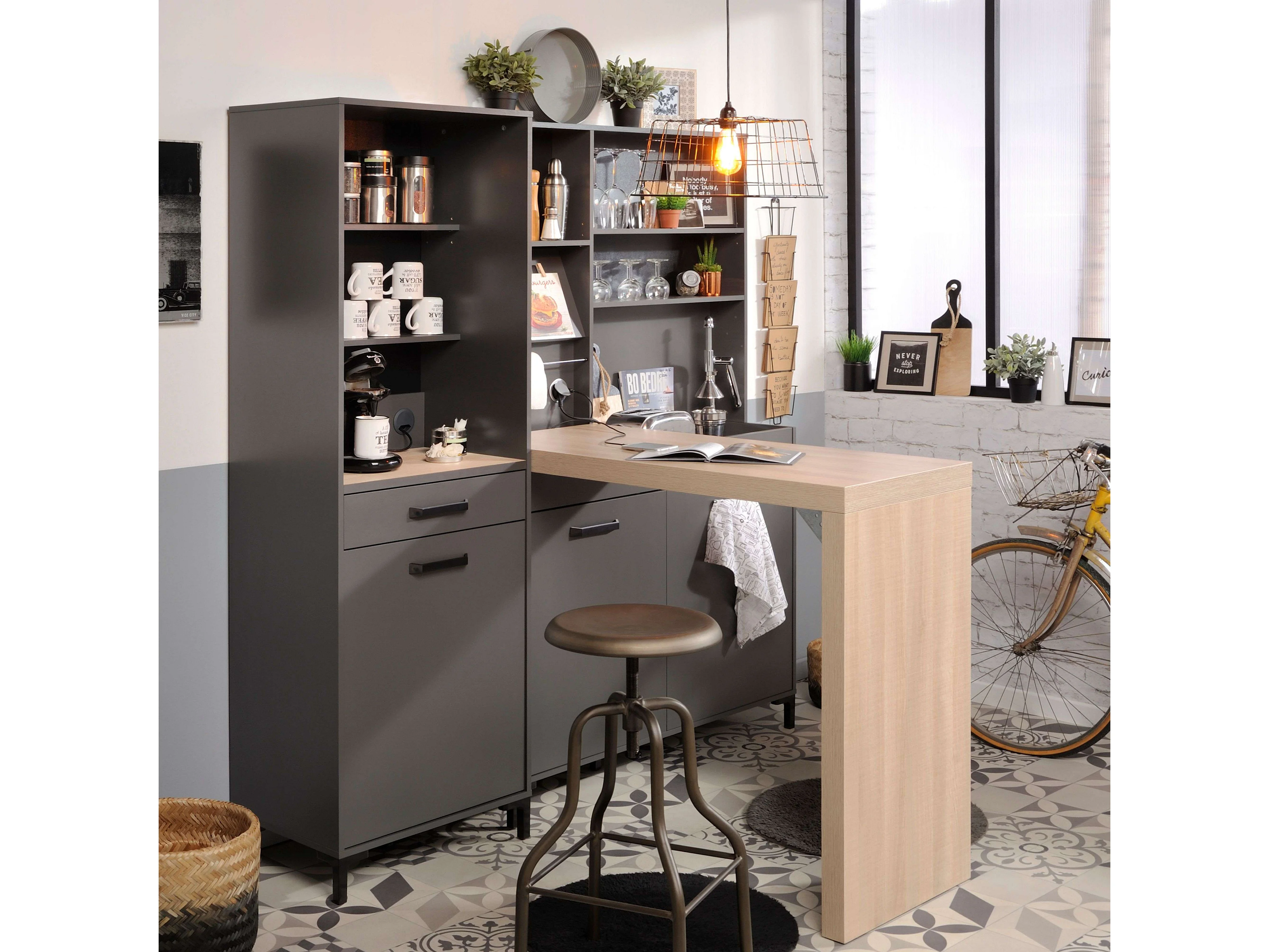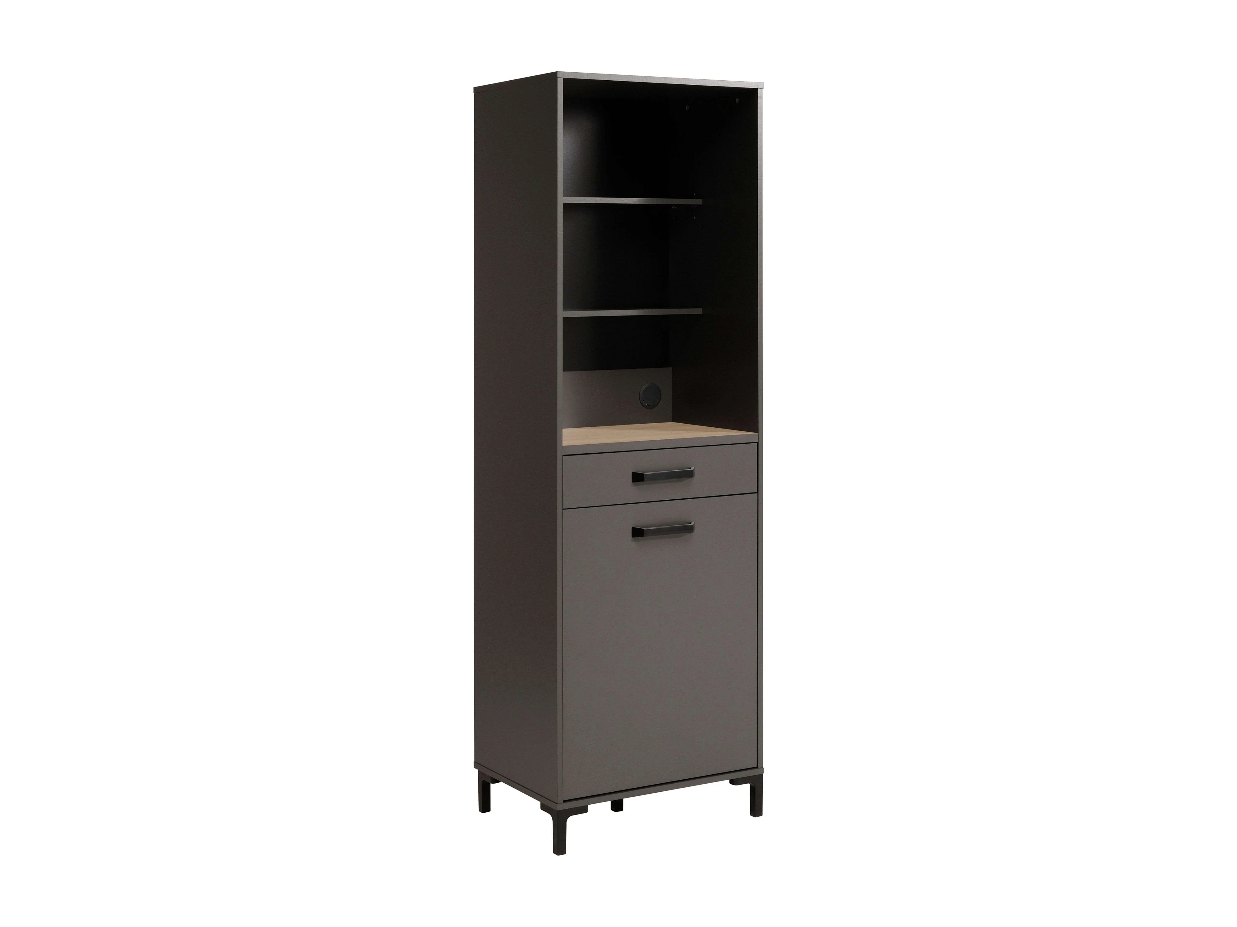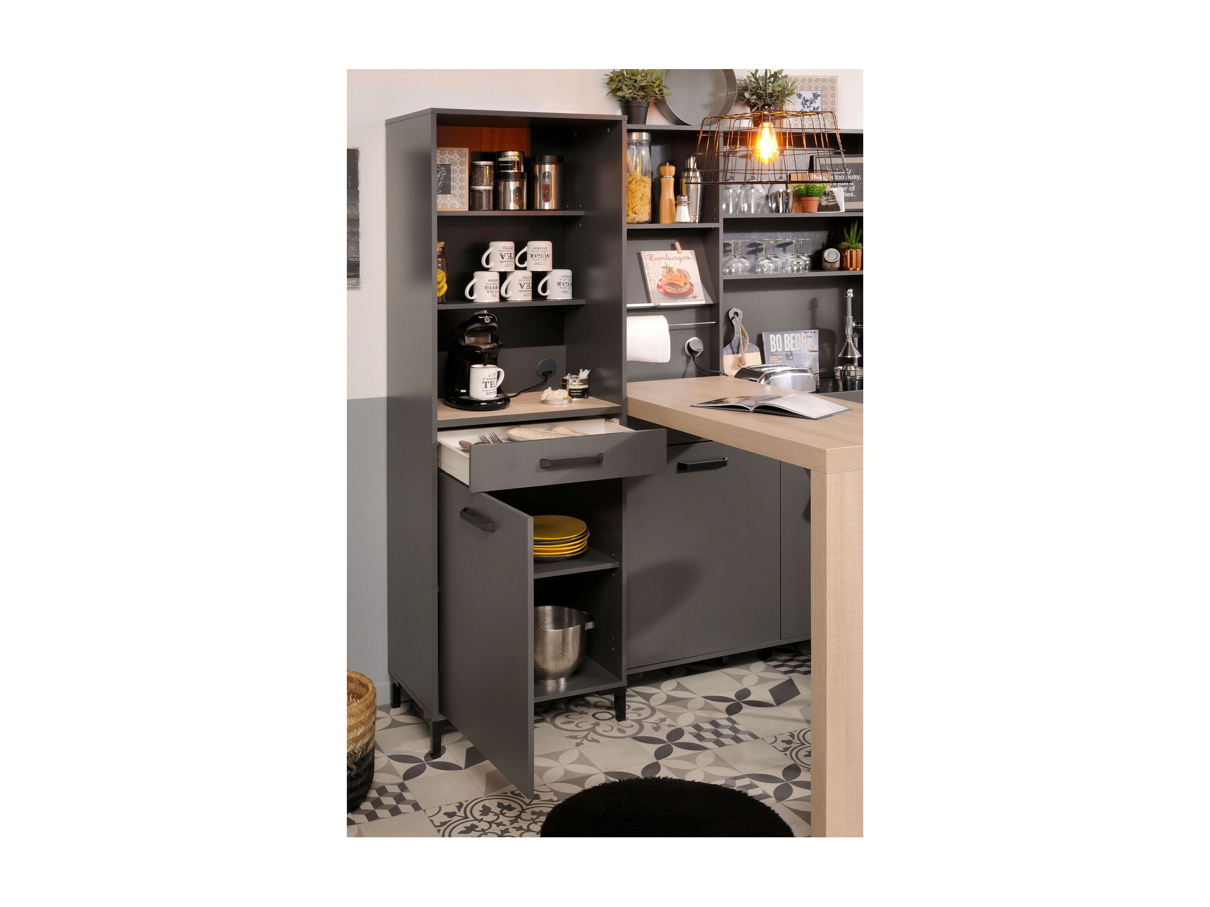Colonne de cuisine industrielle grise fumée, 2 étagères, tiroir et porte 60 x 188 x 42 cm