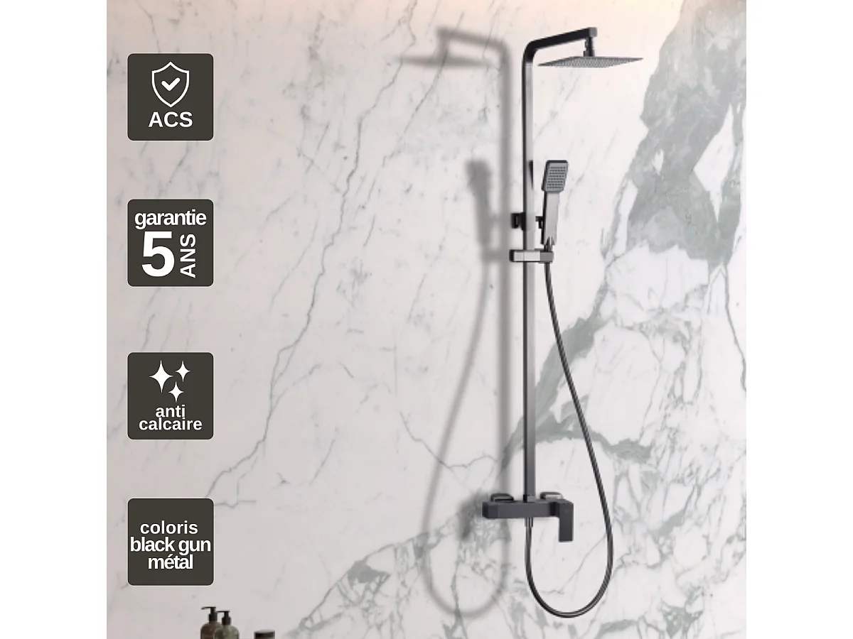 Colonne de Douche noir métal anti-calcaire - Design Moderne et Économie d'eau - Kit Complet PISA IMEX