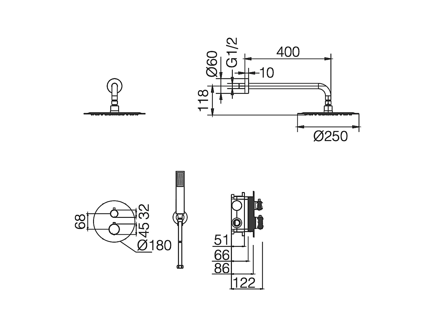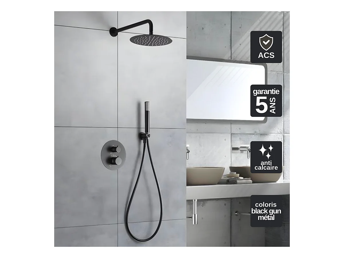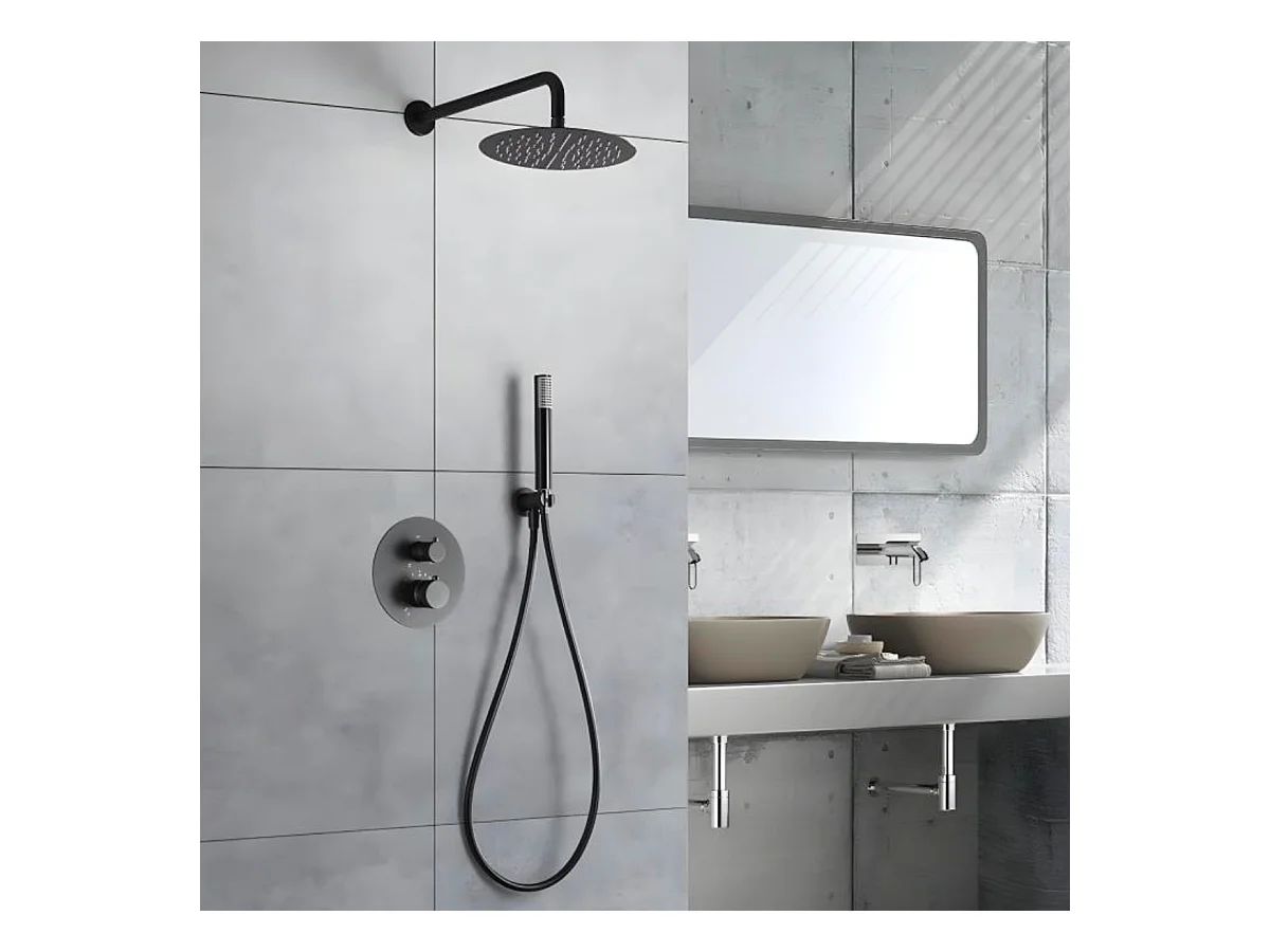 Colonne de Douche Encastrée avec Mitigeur Thermostatique noir métal anti-calcaire - Design Moderne - LINE IMEX