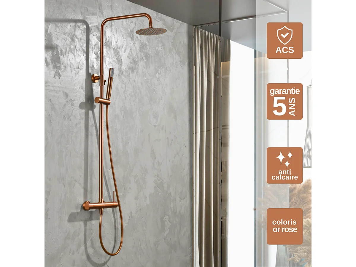 Colonne de Douche Anti-Calcaire Or Rose Cuivré IMEX MONZA BDM039/ORC