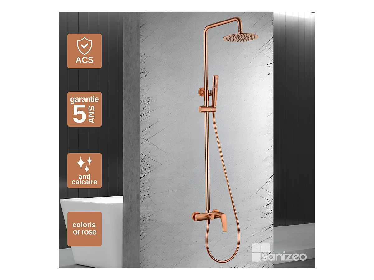 Colonne de Douche or rose cuivré anti-calcaire - Design Moderne et Économie d'eau - Kit Complet DELOS IMEX