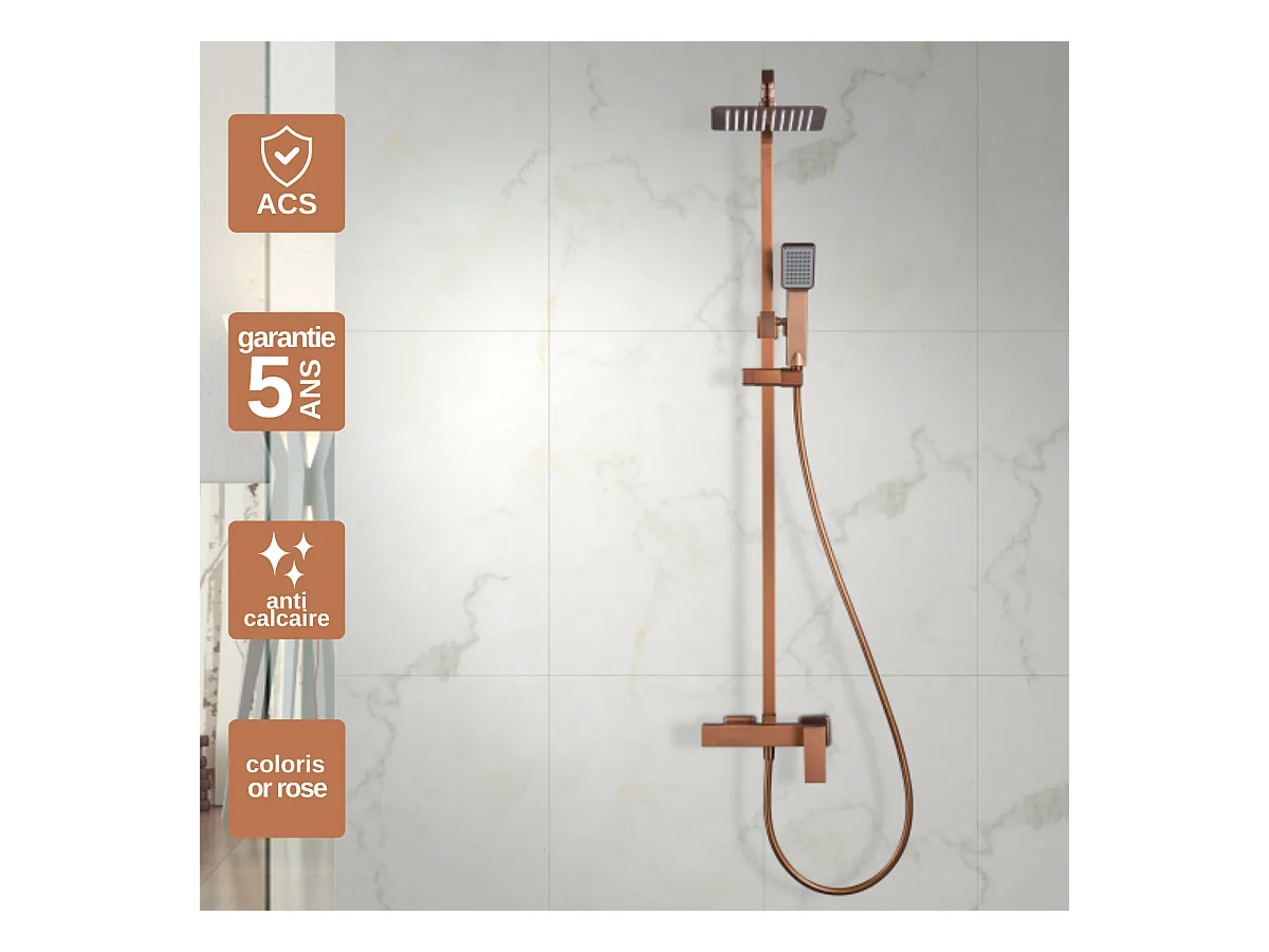 Colonne de Douche or rose cuivré anti-calcaire - Design Moderne et Économie d'eau - Kit Complet PISA IMEX