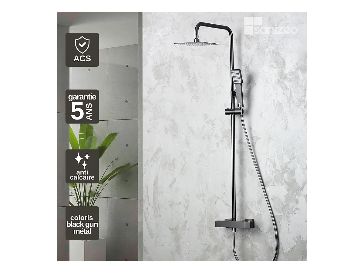Colonne de Douche avec Mitigeur Thermostatique noir métal anti-calcaire - Design Moderne - ART IMEX