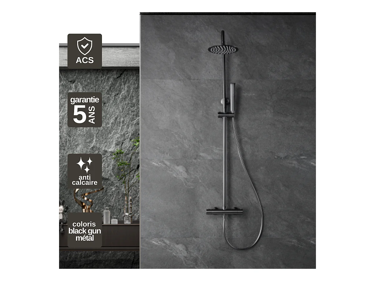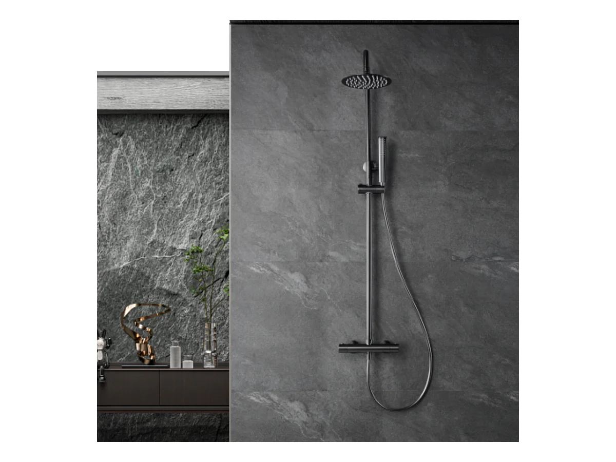 Colonne de Douche avec Mitigeur Thermostatique noir métal anti-calcaire - Design Moderne - NAPOLES IMEX