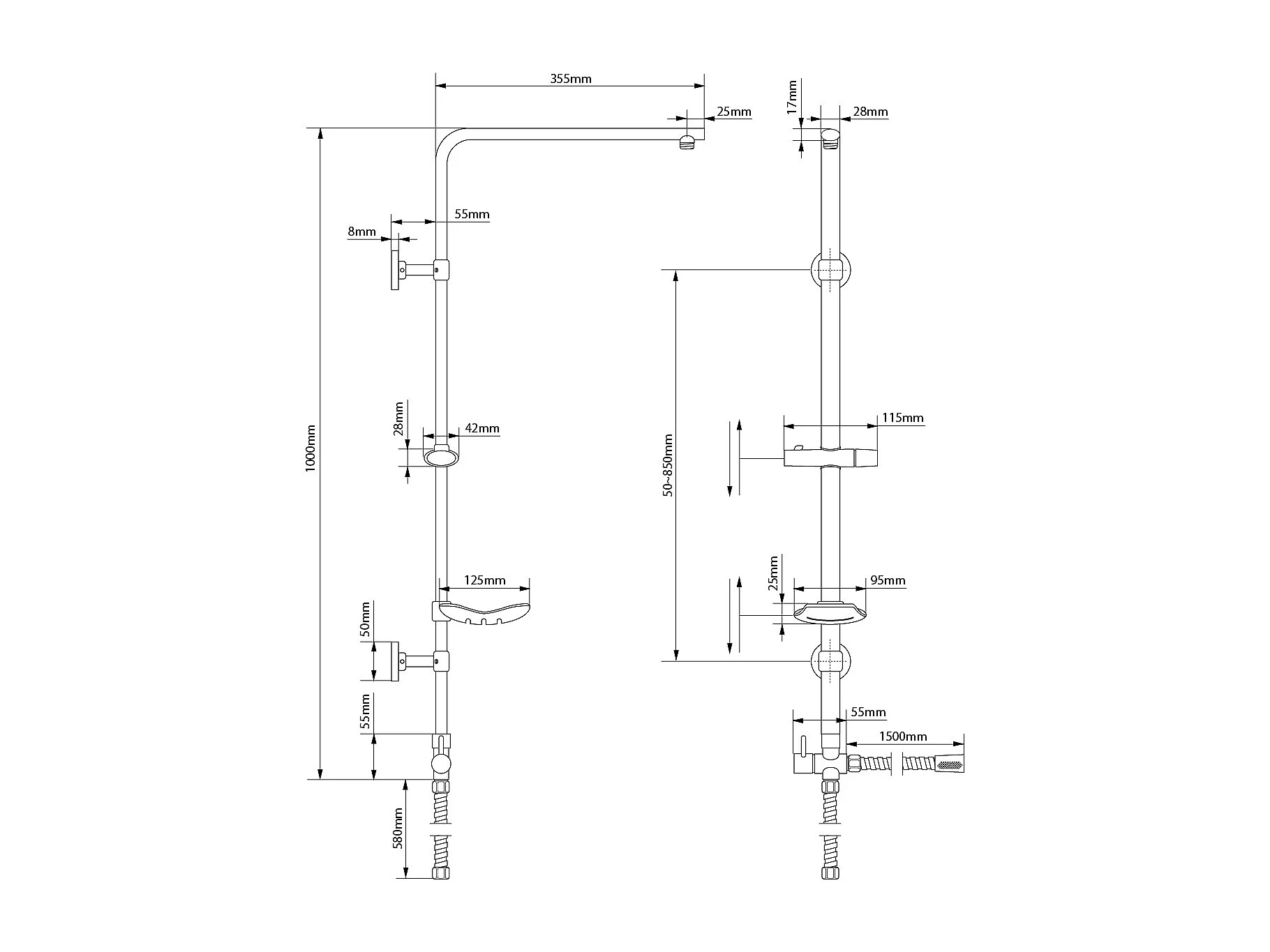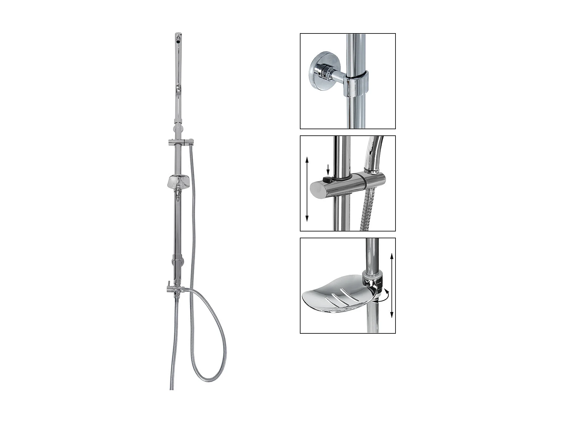 Colonne de douche chromé forme ovale en acier inoxydable V2A montage mural réglable en hauteur sans pommeau 2x flexibles et support porte-savon inclus