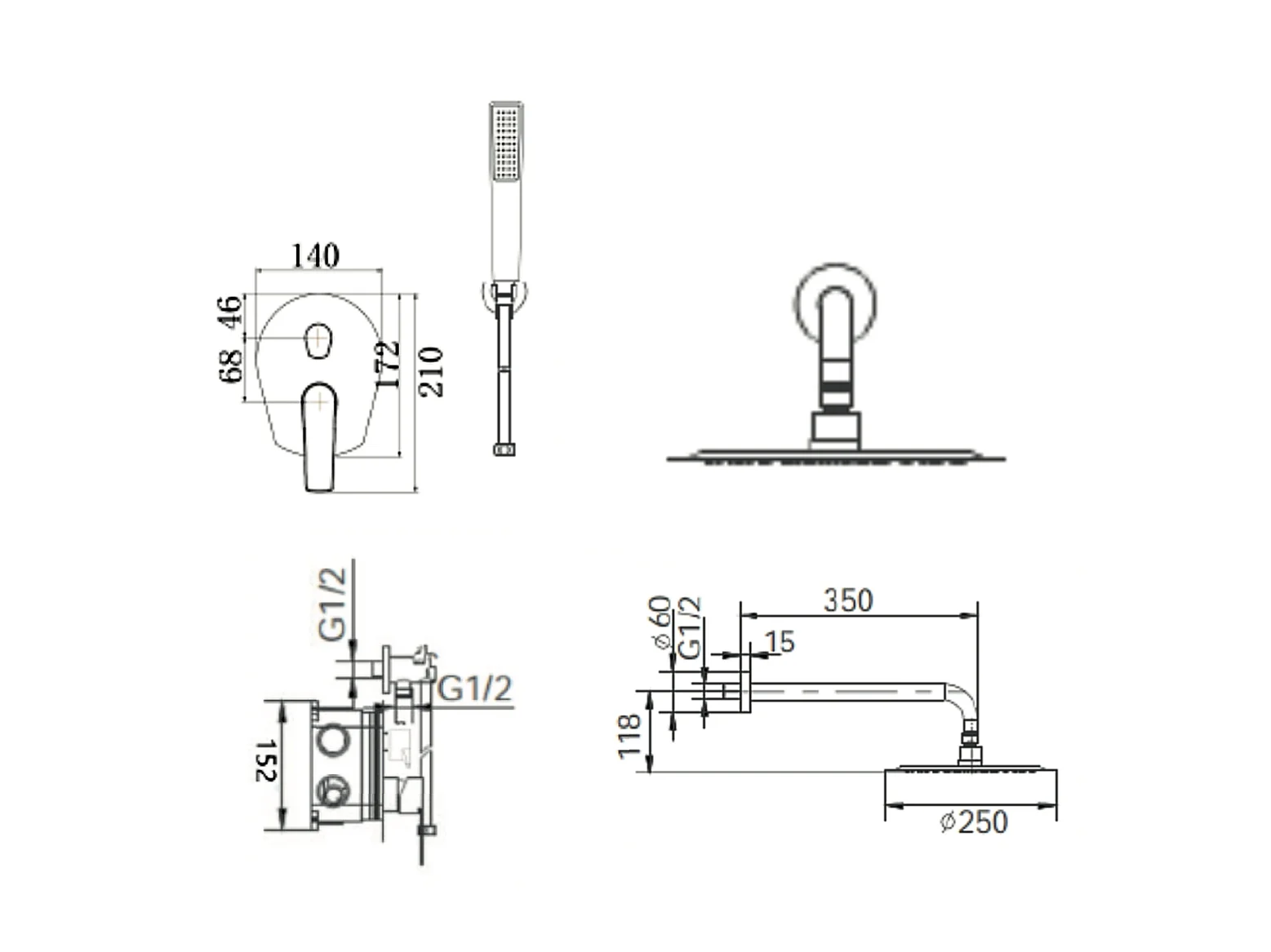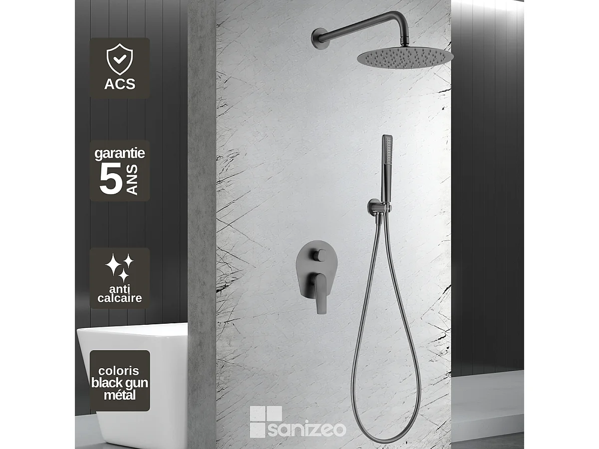 Colonne de Douche Encastrée noir métal anti-calcaire - Design Moderne et Économie d'eau - Kit Complet DELOS IMEX