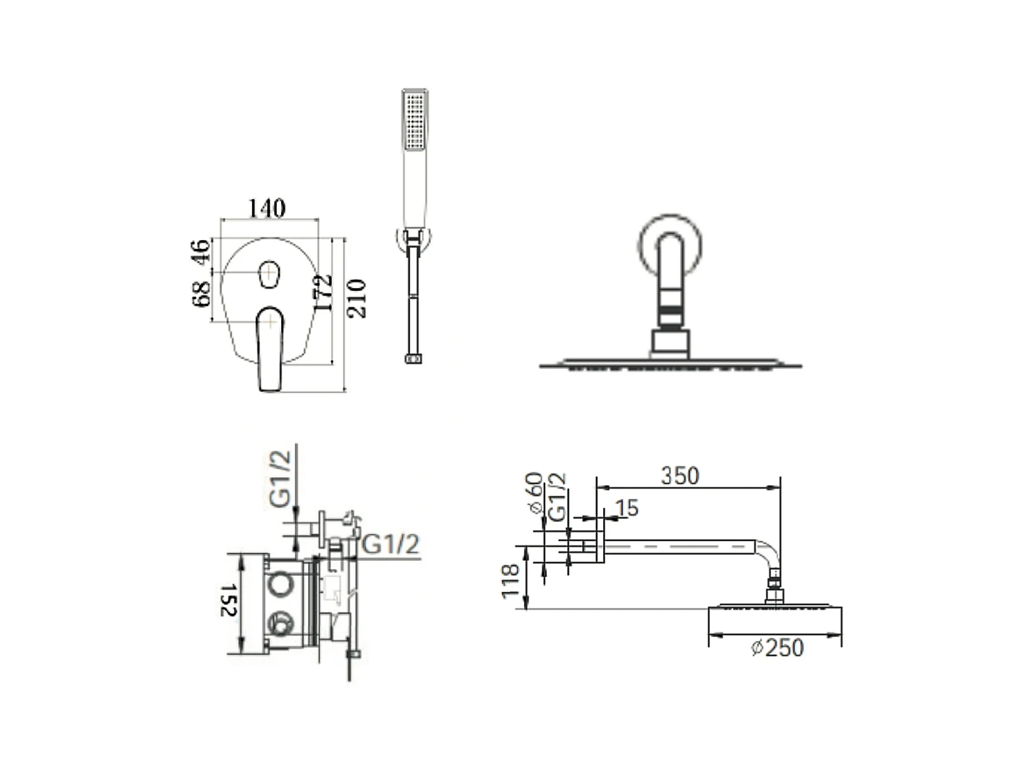 Colonne de Douche Encastrée or rose cuivré anti-calcaire - Design Moderne et Économie d'eau - Kit Complet DELOS IMEX