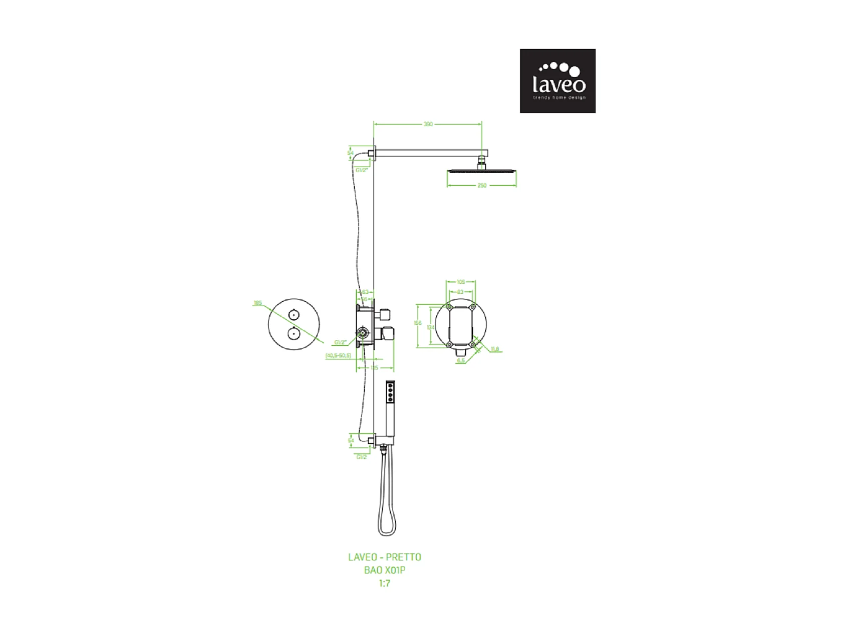 Colonne de douche encastrée Pretto, avec set, Couleur: Noir