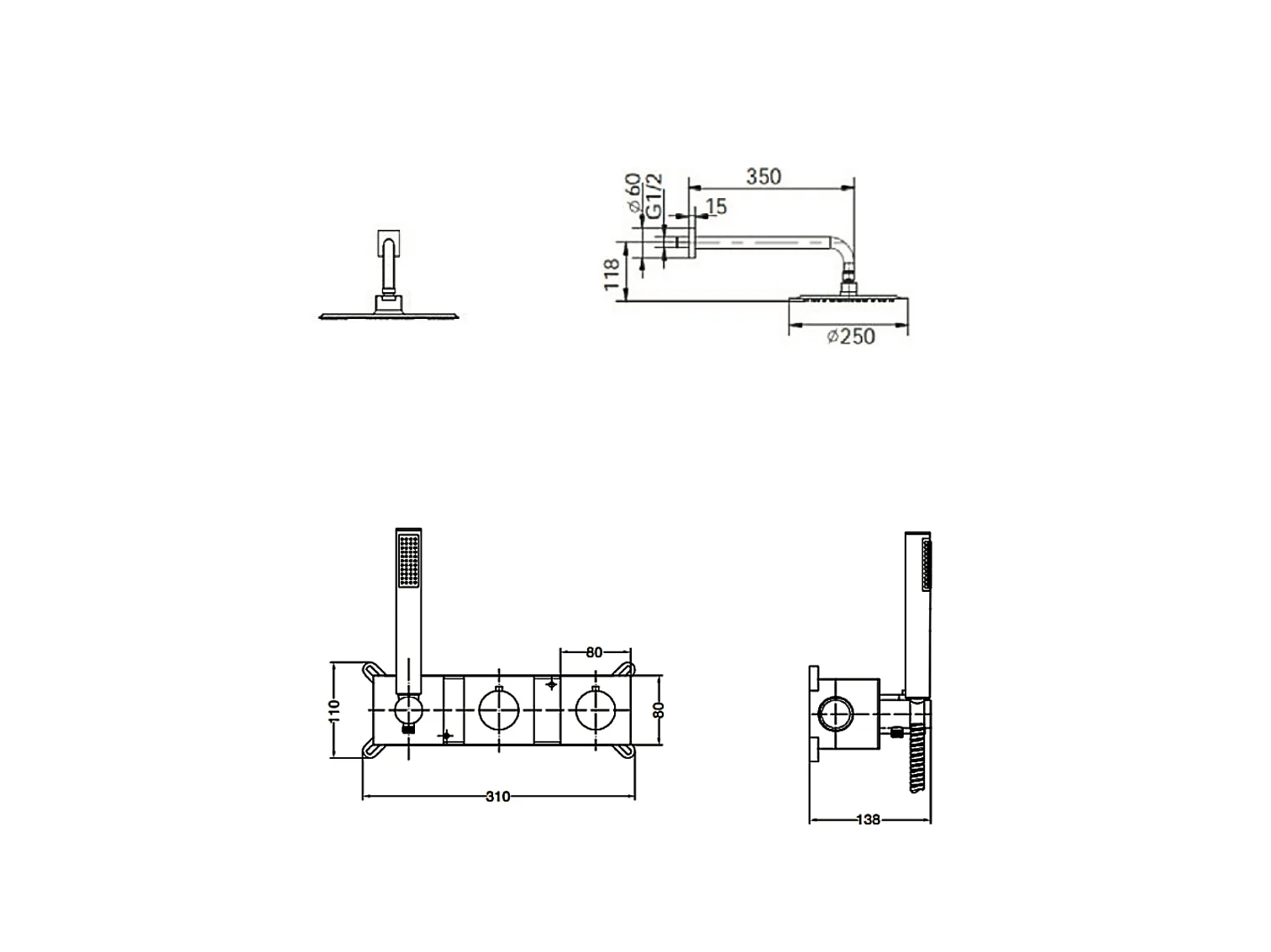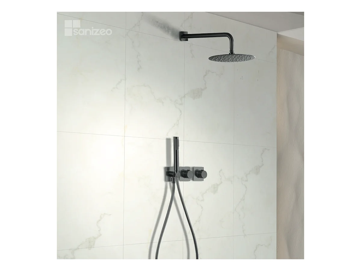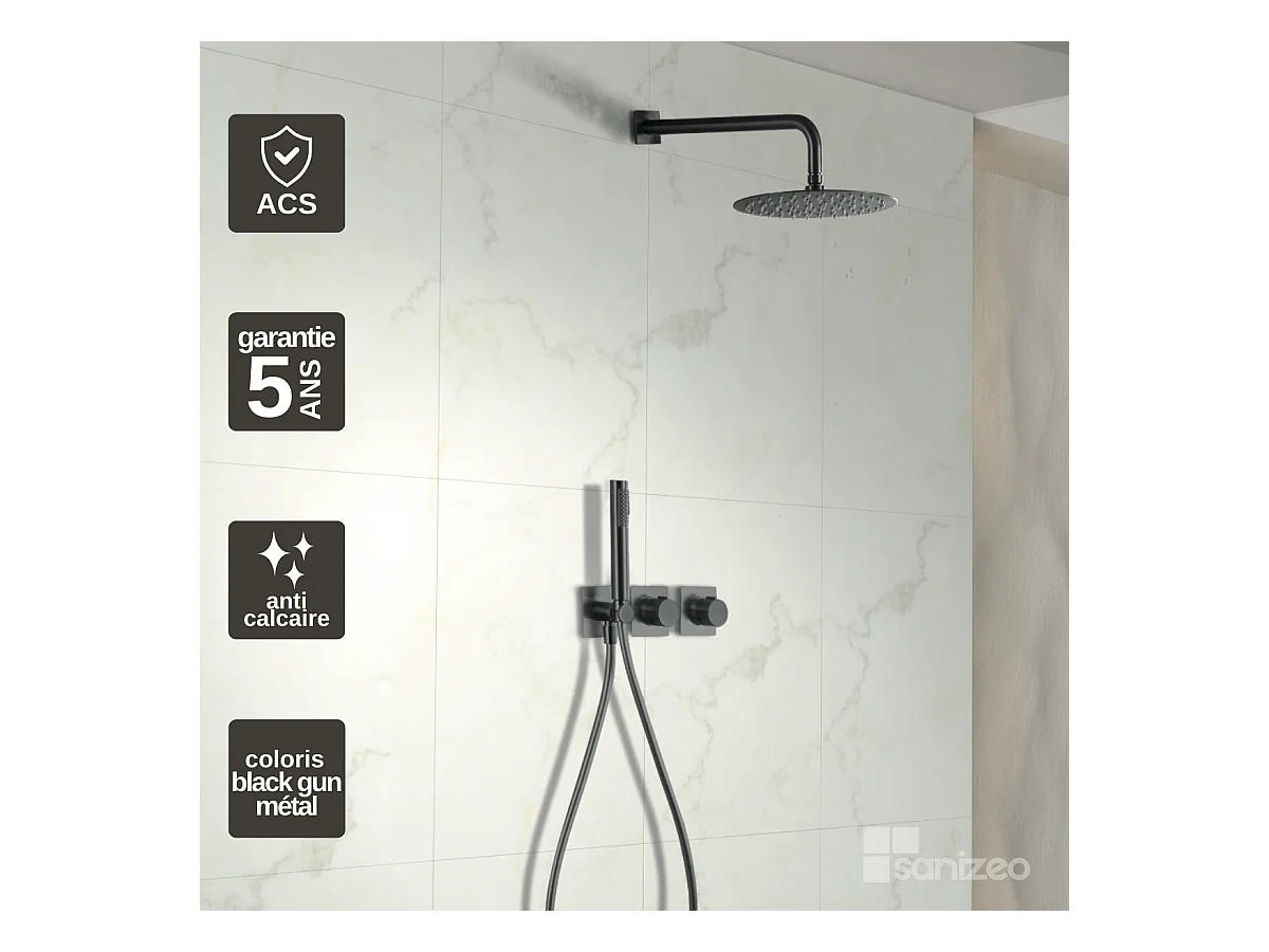 Colonne de Douche Encastrée avec Mitigeur Thermostatique noir métal anti-calcaire - Design Moderne - TIBET IMEX