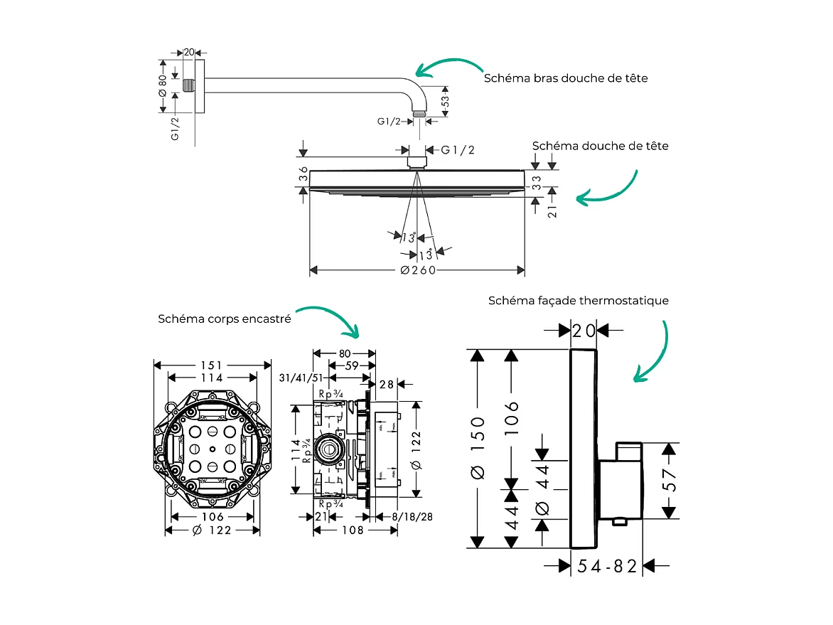 Colonne de douche encastrée thermostatique HANSGROHE ShowerSelect S Douche Pulsify Flexible Designflex Douchette Raindance S blanc