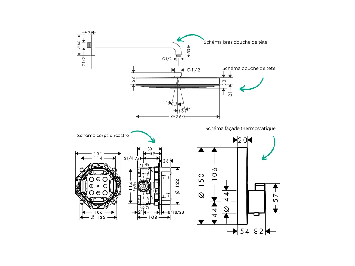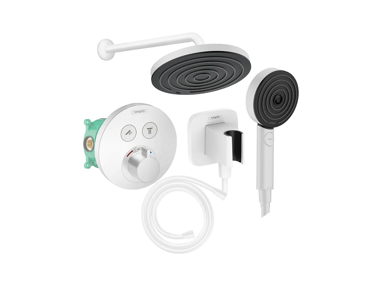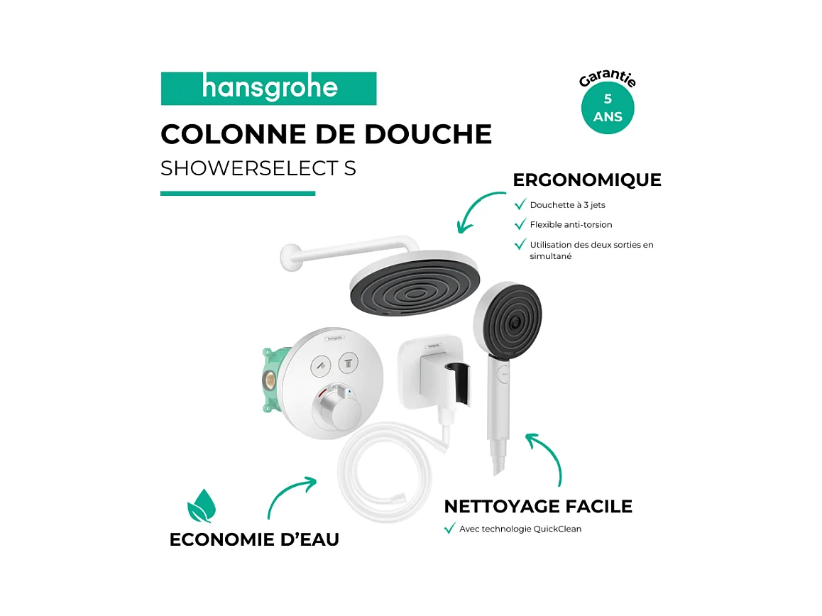 Colonne de douche encastrée thermostatique HANSGROHE ShowerSelect S Douche Pulsify Flexible Isiflex Douchette Pulsify blanc