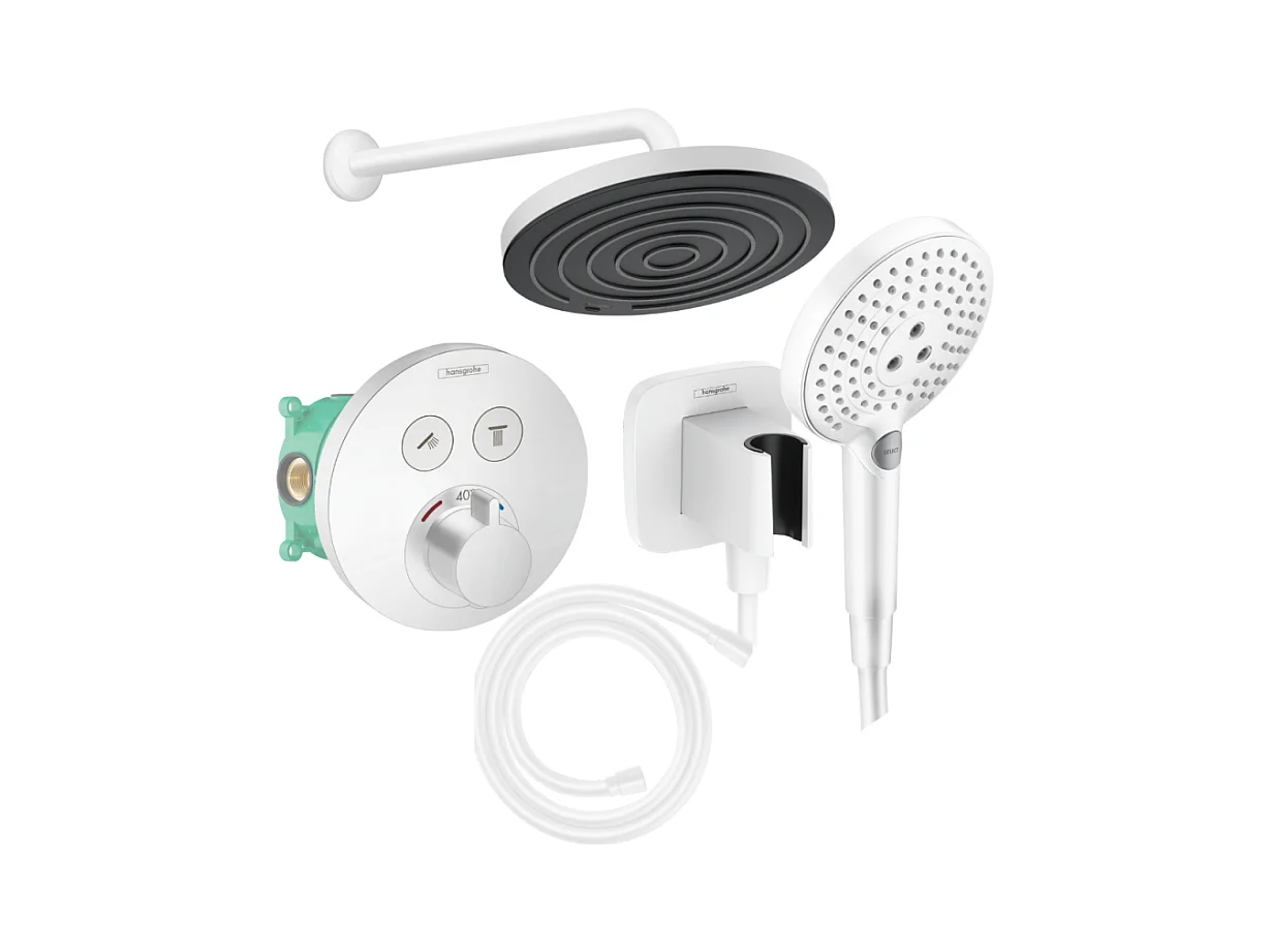 Colonne de douche encastrée thermostatique HANSGROHE ShowerSelect S Douche Pulsify Flexible Isiflex Douchette Raindance S blanc