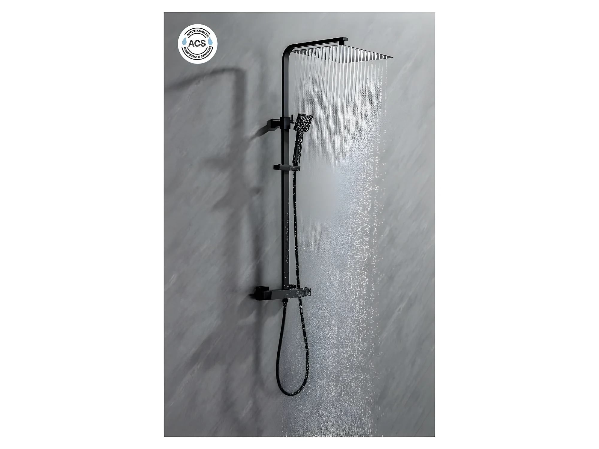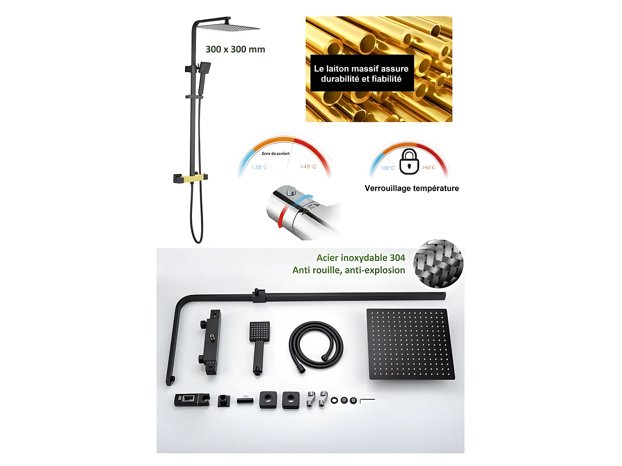 Colonne de douche OCEANIC - Mitigeur thermostatique - Pomme haute carrée 30x30 cm - Noir mat